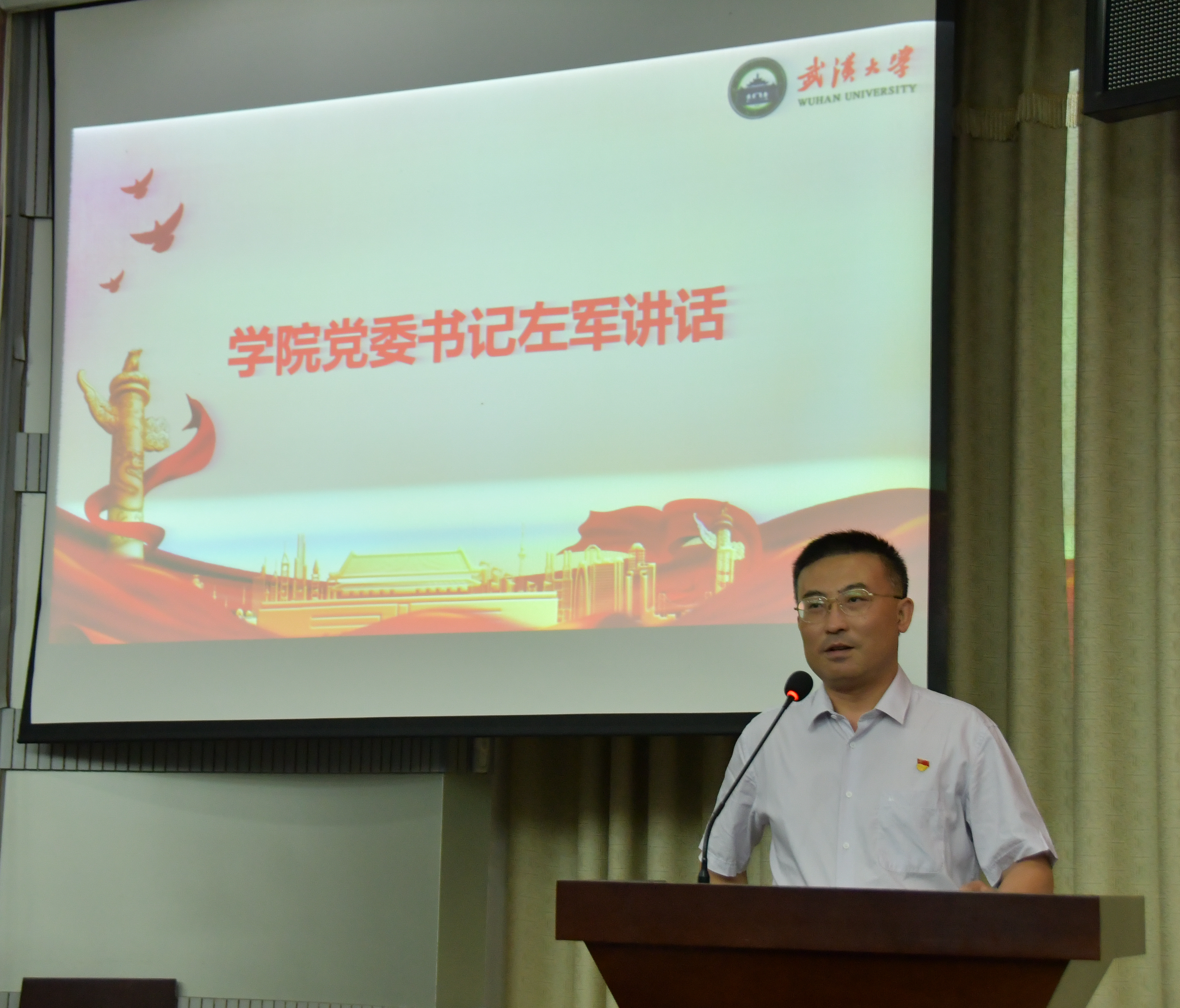 左军祝贺我院学子2021�2022在专业学习、党团建设、社会实践、志愿服务等方面取得的喜人成绩,感谢全院老师辛勤“三全育人”。他概括介绍了我院本学期有关重要工作,勉励全院学子以获奖同学为榜样,立足各自学业和学生组织岗位,努力进取创先争优,用实际行动践行“强国有我”的青春誓言。他祝愿同学们全面提升综合素质与核心竞争力,在建设国际一流数学学院的征途中书写自己的青春华章。他祝福全院2022届毕业生同学前程似锦,在报效国家服务社会中建功立业�