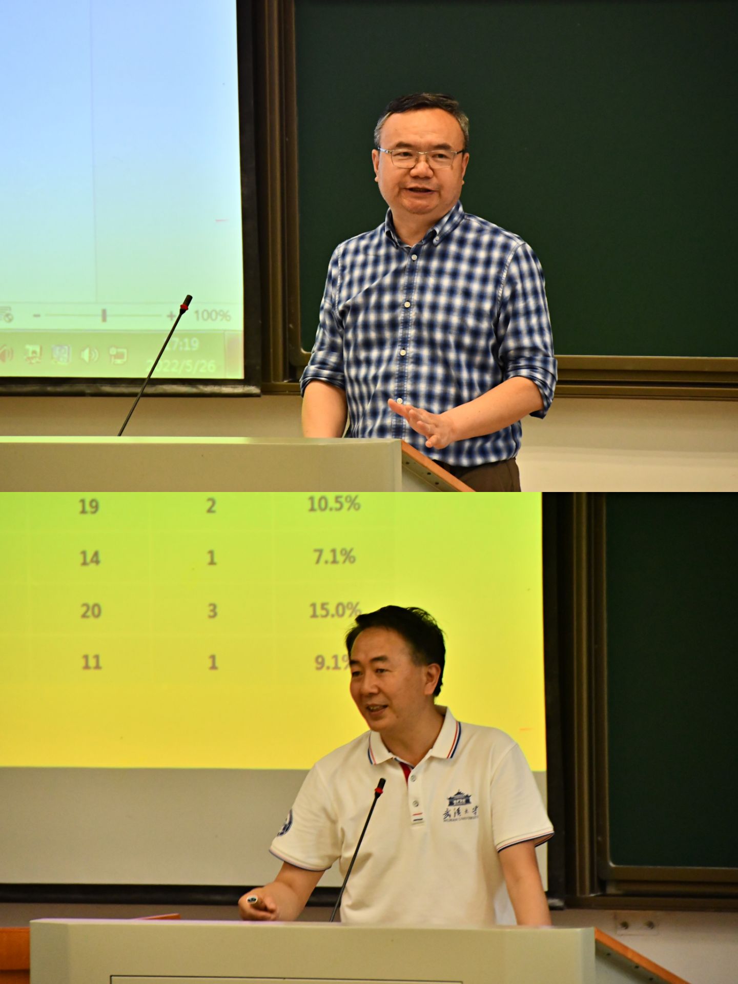 2022�5�26日下午,数学�2023届毕业生学业指导大会暨遴选优秀本科生提前攻读本院研究生宣讲会在四教201教室召开。院长赵会江教授、党委副书记汪思明、副院长缪爽教授、基础数学�副主任刘会教�、应用数学系主任吴晓群教�、信息与计算科学�主任吕锡亮教�、概率与统计科学�副主任刘伟教授和各系教师代表、学工办的老师出席会议�2019级全体同学参加会议�院党委副书记黄安�主持会议�