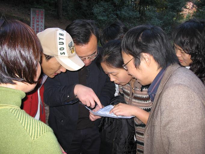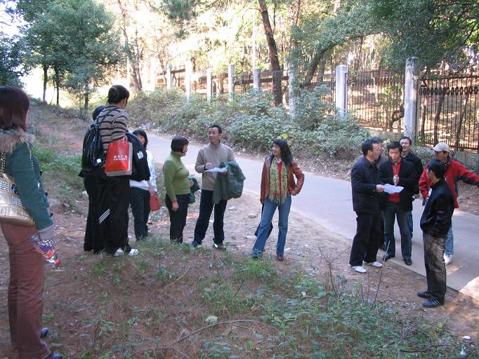 工会品牌活动“和谐学院、健康之旅”徒步行进活动再次成功开展。全院七十余名教职工徜徉山水、寻觅宝藏、聚会农家,共话家常,共同渡过了一个有意义的下午。自2007年开创性地在全校成功开展“和谐学院、健康之旅”徒步行进活动后,学院内外反响热烈。本学期开学后,院工会即对如何再次开展徒步行进活动进行了认真的调研工作,旨在进一步带动全院教工健身热潮、促进和谐学院建设。为保证活动吸引力,院工会委员罗云峰老师创新性地提出了增加“寻觅宝藏”的新内容,并带领肖玉霞老师专程进行了沿线考察并设置了藏宝点,同时绘制了地形图。院工会委员会随后在全院教职工进行了广泛发动,并得到了全院教职工的积极响应,徒步行进活动成为了学院教职工热议的话题。11月28日,秋高气爽,阳光明媚,下午一点,参加远程行进的二十余名老师齐聚学院大门前,率先开始了经人文馆、艺术系(老铁疗)、风光村侧门、八一游泳池、沙湾村、西头村、南望山、喻家山、团山、大李村的三小时行程;随后,下午两点半,参加中程行进的四十余名名老师也开始了经人文馆、艺术系(老铁疗)、出风光村侧门、八一游泳池、梅园、大李村沿线的愉快之旅。大家自由组成寻宝小组,手持地图与“寻宝导引”边走边聊,共同挖掘“宝藏”,在湖光山色中尽情挥洒笑语欢歌,密切了同事感情。四点三十,两列队伍会合于农家餐馆,在热烈欢快气氛中共进晚餐。院长陈化教授、院党委书记尹常倬代表学院向每位老师表示了慰问,大家也纷纷表示:一定会积极参加学院有益教职工身心健康的各项活动,要做好本职工作,共同为和谐学院建设贡献力量。活动结束后,每位老师将凭宝藏代用券兑换奖品一份,无宝藏代用券者领取纪念品一份,活动再获圆满成功。(摄影:王忠海 罗壮初)