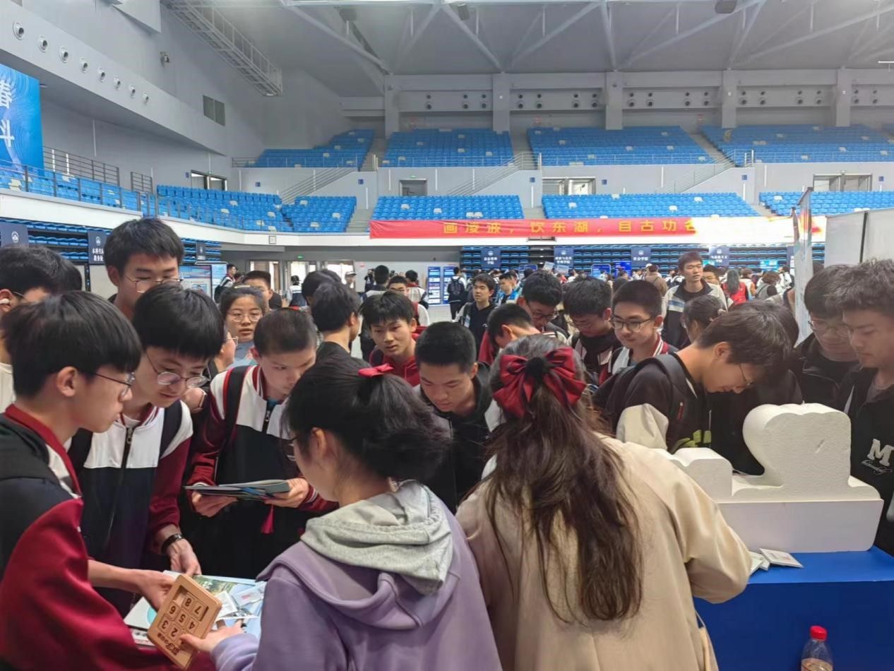 在卓尔体育馆主会场,院党委副书记刘珊珊、副院长王茂发、副院长王六权、信息与计算科学系李订芳等多名教师和学生志愿者在我院展位前为高中生答疑解惑,发放宣传资料。针对高中生和家长提出的招生政策、专业设置及培养模式等问题,逐一热情回答�学生志愿者设计的数学小游戏,吸引众多高中生前来参与,体验数学的魅力�