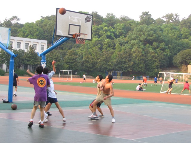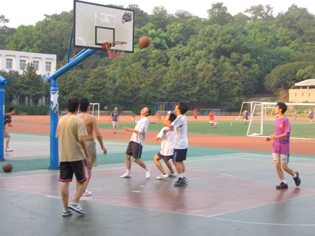 桂园篮球场拉开了序幕。夏日的骄阳也屈服于学员们不减的热情,洒下了落日的余辉。本次比赛共有六只代表队参加了比赛,比赛抽签分为A、B两个小组进行第一轮小组循环赛。A组为梦之二队(新疆大学等)、武大数学院队、AJ队(香港中文大学);B组为山河猛男队(山东、河南学员联队),京广小动脉队(北京大学、中山大学联队),Celtics(华南师范、复旦大学联队)。