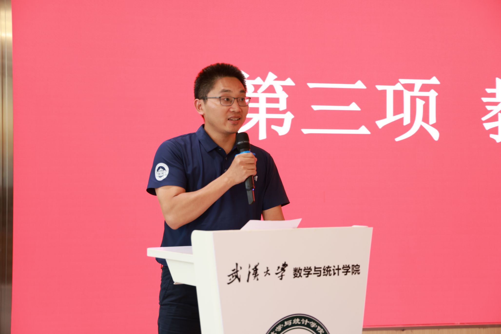 教师代表张灿在发言中深情回顾了20年前在武大的求学之路,向新生同学分享了在珞珈山下的学术启蒙。他谈到,数学是一门纯粹而具有挑战性的学科,他勉励各位新生养成良好的习惯,在完成数学思维训练的过程中与志同道合的人相互促进、共同成长。