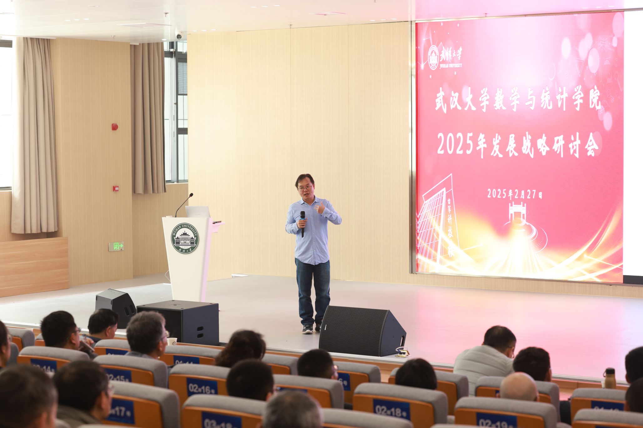 数学学科现状,系统介绍了学院2025年的工作思路,并对2025年的重点工作进行了全面部署。他传达了学校2025年发展战略研讨会会议精神,从科学研究、人才培养、社会影响力和行政服务等方面提出了学院的内在发展目标,并对学院人才队伍建设、研究团队讨论班建设、Colloquium建设、“三个‘1’”课程体系规划、数学文化建设与数学实验室建设以及行政办公室职能全面优化调整等重点工作进行了细致阐述。他强调,2025年是“十四五”规划收官之年,是“十五五”启动教育强国建设全面布局、高位推进之年,是贯彻落实学校第十次党员代表大会精神的开局之年,也是学校的“深化改革年”,我们要锚定目标、攻坚克难,全面深化改革,抓好下一个五年征程的开局起步。