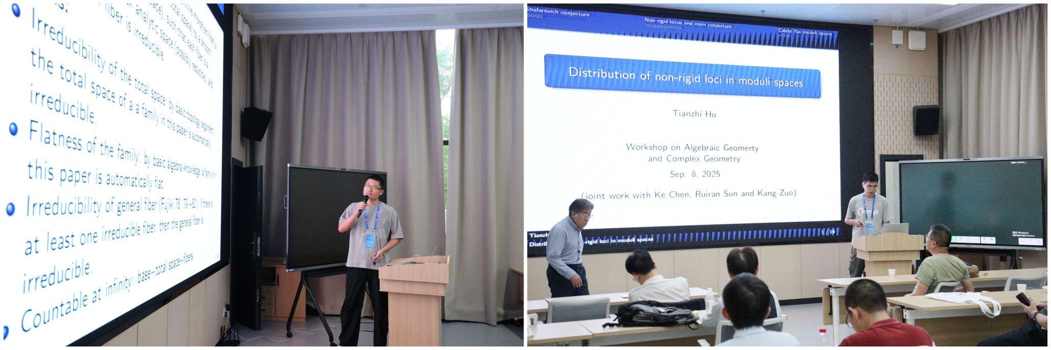 学术会议期间特设短报告环节,邀请青年学者华中师范大学博士后陈健和武汉大学博士生胡天智,分别就偏纤维双亚纯映射及局部Moishezon族双亚纯型的特化、模空间中非刚性集的分布等前沿课题作学术报告,这一环节进一步丰富了工作营的学术层次,展现了青年科研力量在基础数学领域的创新活力�