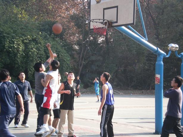 工会和院研究生会体育部共同举办的学院师生篮球赛激情上演。由胡宝清老师、李订芳老师、龚亚芳老师、黄安云老师、丁文老师、陈国贤老师、马涛老师、何德彪老师组成的教师队同研究生代表队进行比赛,最终双方以平分握手言和。