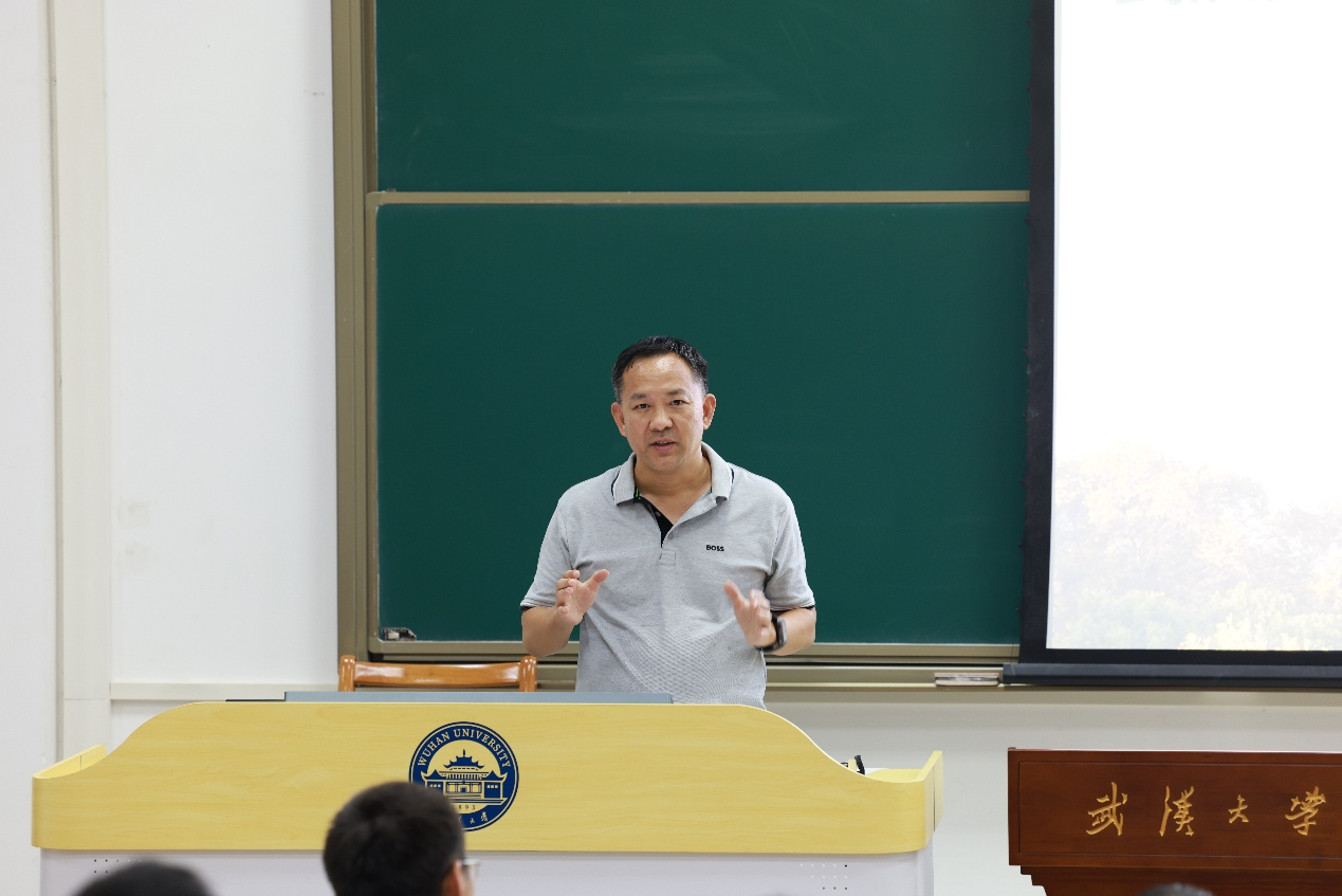 范辉军对数学学科的发展、学院人才培养的举措展开阐述。他指出,数学作为一门重要的基础学科,持续推动着科学社会的发展与进步。他强调,中法数学拔尖班和数学自强班是校级拔尖人才培养示范特区,旨在培养有志于数学研究、在数学领域勇攀高峰的拔尖创新人才。他呼吁,同学们始终保持对数学本真的初心,以最大的热情投入到数学的学习研究中。他期望,热衷数学研究的同学们踊跃报考数学中法班和自强班,并表示学院会全力支持中法班和自强班的建设。