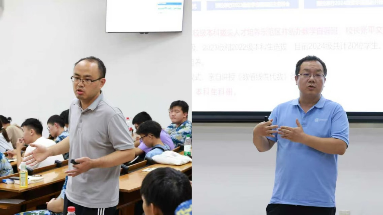 缪爽全面讲解中法数学拔尖班的建设背景、培养方案、培养特色以及考核选拔机制,并详细介绍中法班的招生选拔方案与未来的国际化发展路径。同时,吕锡亮对数学自强班的建立背景、培养特色、选拔考核方案进行了全面的介绍,并详细阐述了本科生科研的培养思路。