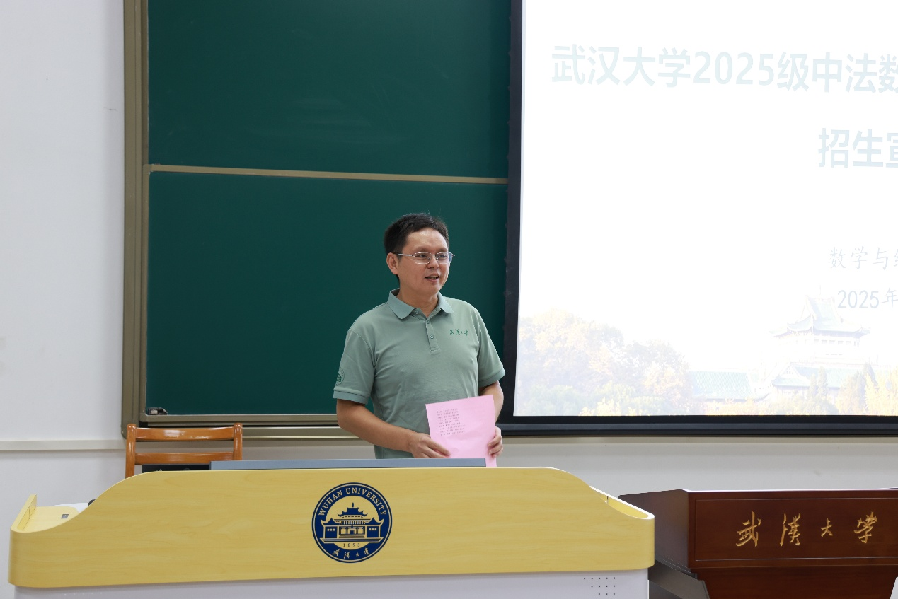 王茂发对到场的师生表示热烈欢迎。他指出,本次宣讲会诚挚邀请志在数学研究并渴望成为该领域领军人物的同学加入我们的中法数学拔尖班和数学自强班,共同探索数学的新旅程。