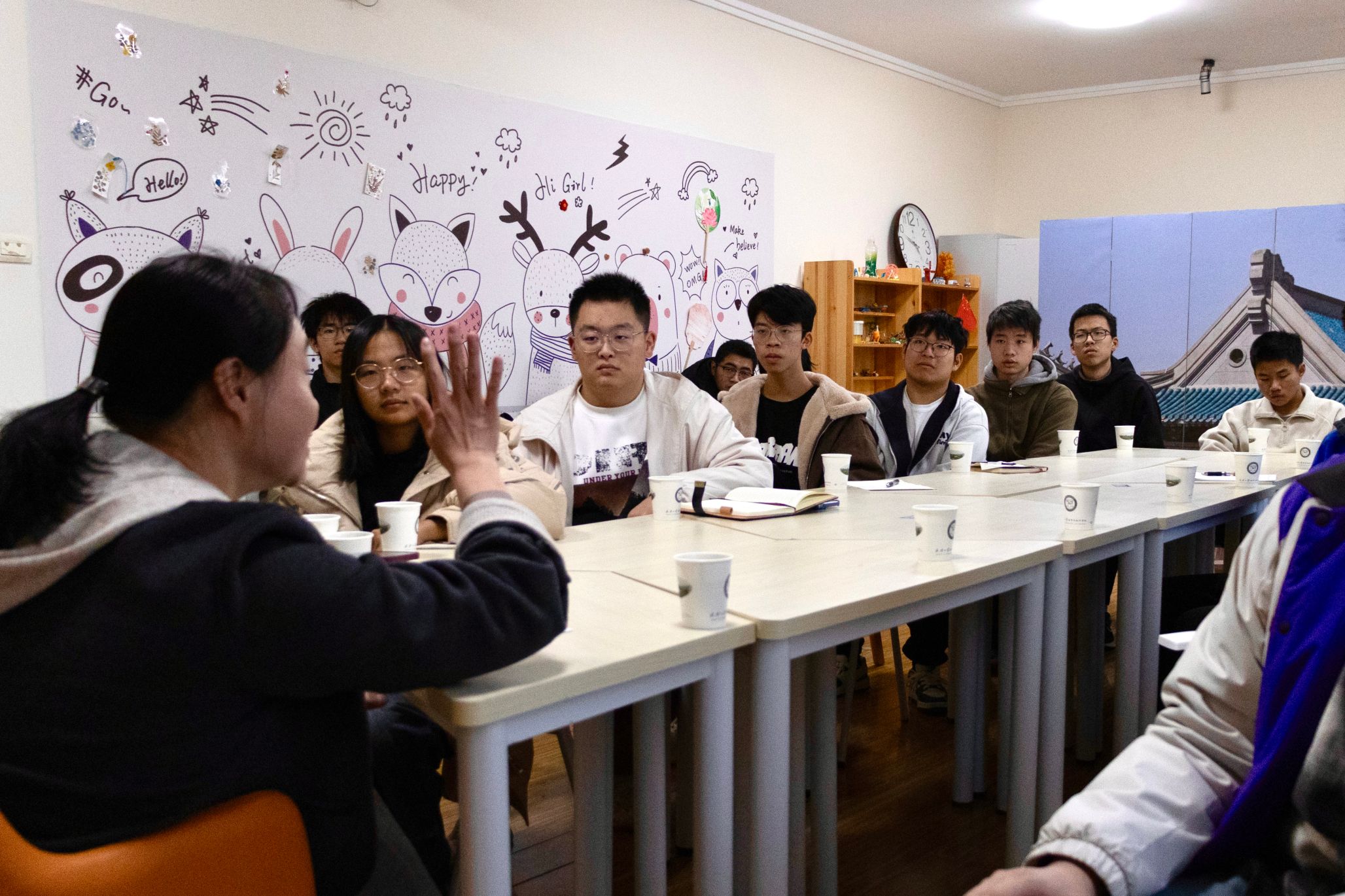 2025年11月27日下午17:00,“数海引航・教授茶座”第三期于湖滨七舍“一站式”学生社区5楼心友邻曦小站成功举办。本次茶座邀请刘晓春教授担任主讲嘉宾,以“数路逐光:在未知中笃定前行”为主题,与十余名本科生、研究生开展深度交流座谈。活动由2025级本科生邱曼容主持。
