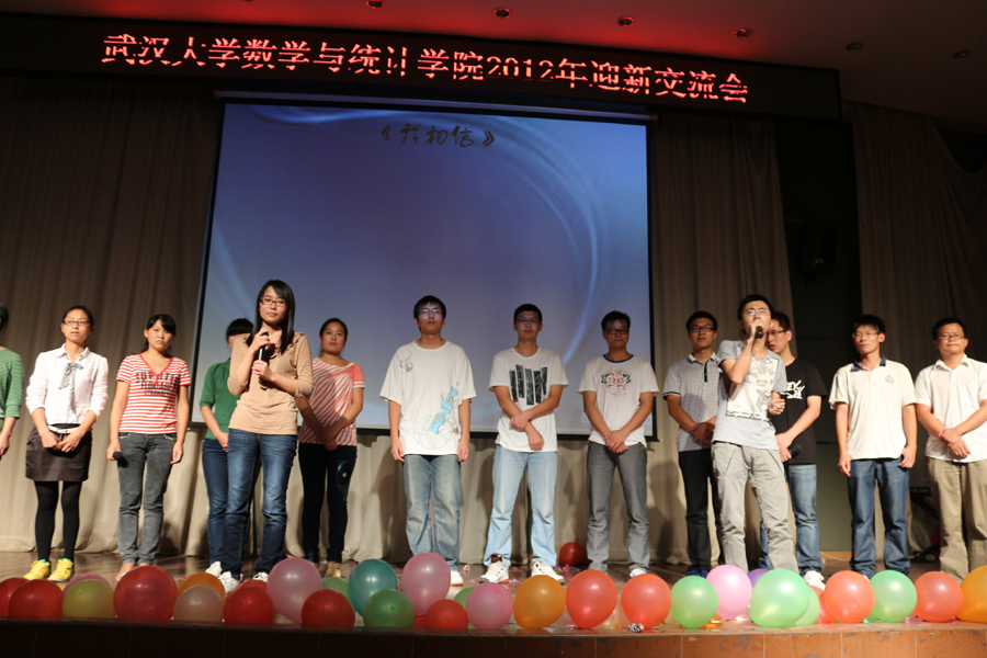 2012年迎新交流会在教五多功能报告厅隆重举行。到场参加的数院领导及老师有院党委副书记吴蜀江老师,副院长陈文艺教授、胡亦钧教授,学工办主任黄安云老师,团委书记李好老师,辅导员胡法拉老师,2012级班导王融、丁洁丽、乔晖老师等。参加交流会的有本科生和研究生新生以及来自大二大三学生会的学长们,还有指导数院大一新生军训部分教官。在文体部工作人员的布置下,联欢会现场洋溢着欢乐、温馨的气氛。此次迎新交流会由笔趣阁app