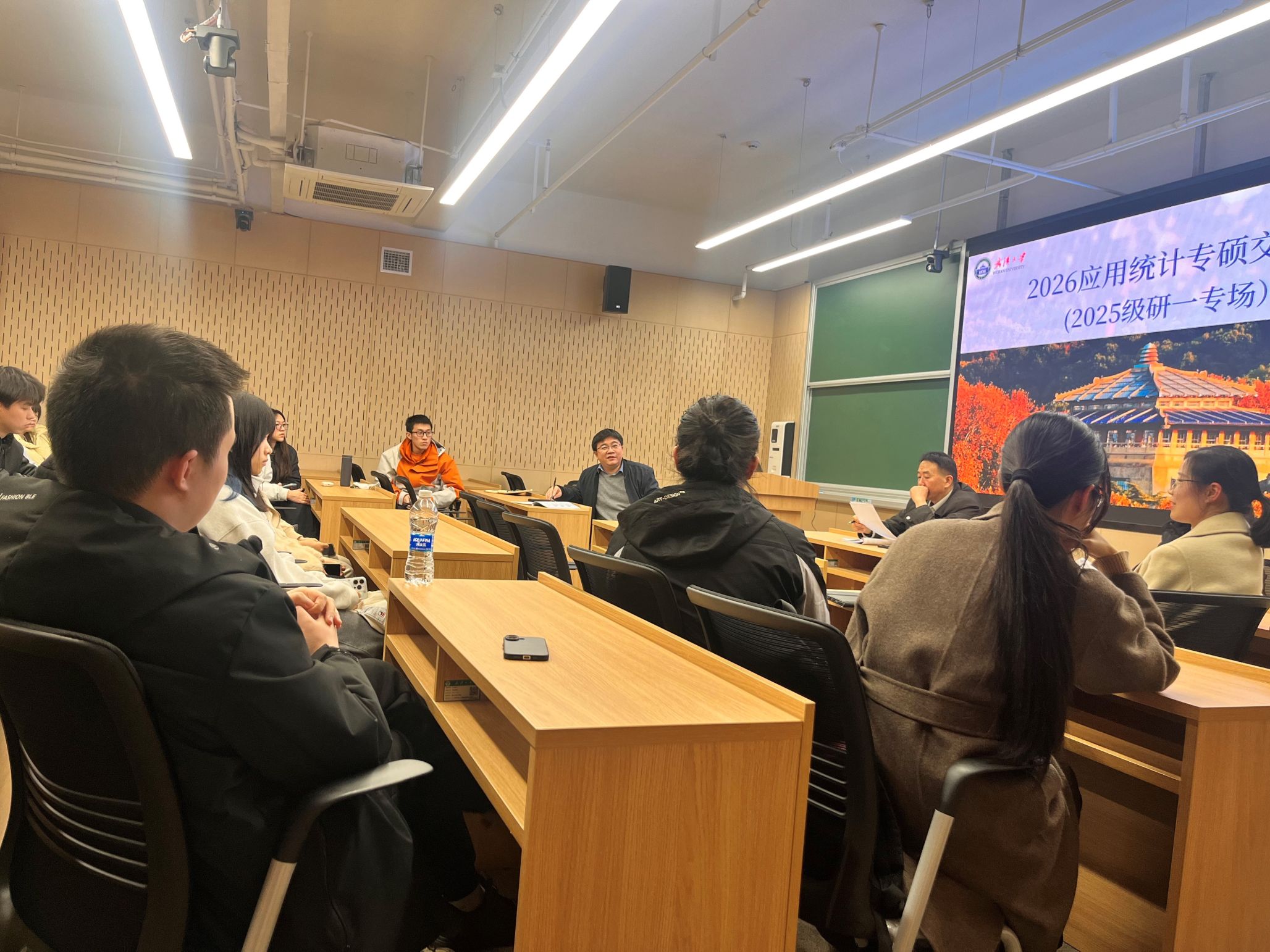 举办2026年应用统计专硕交流会。为帮助研一专硕学生提前规划职业路径、树立科学实习观念,夯实未来就业竞争力,学院党委副书记汪思明,学院副院长、应用统计专硕教指委主任刘伟,统计学教研室主任、应用统计专硕教指委秘书长邓世容及专硕项目秘书何庭庭出席会议,与2025级专硕学生共同探讨职业发展路径与实习规划要点。