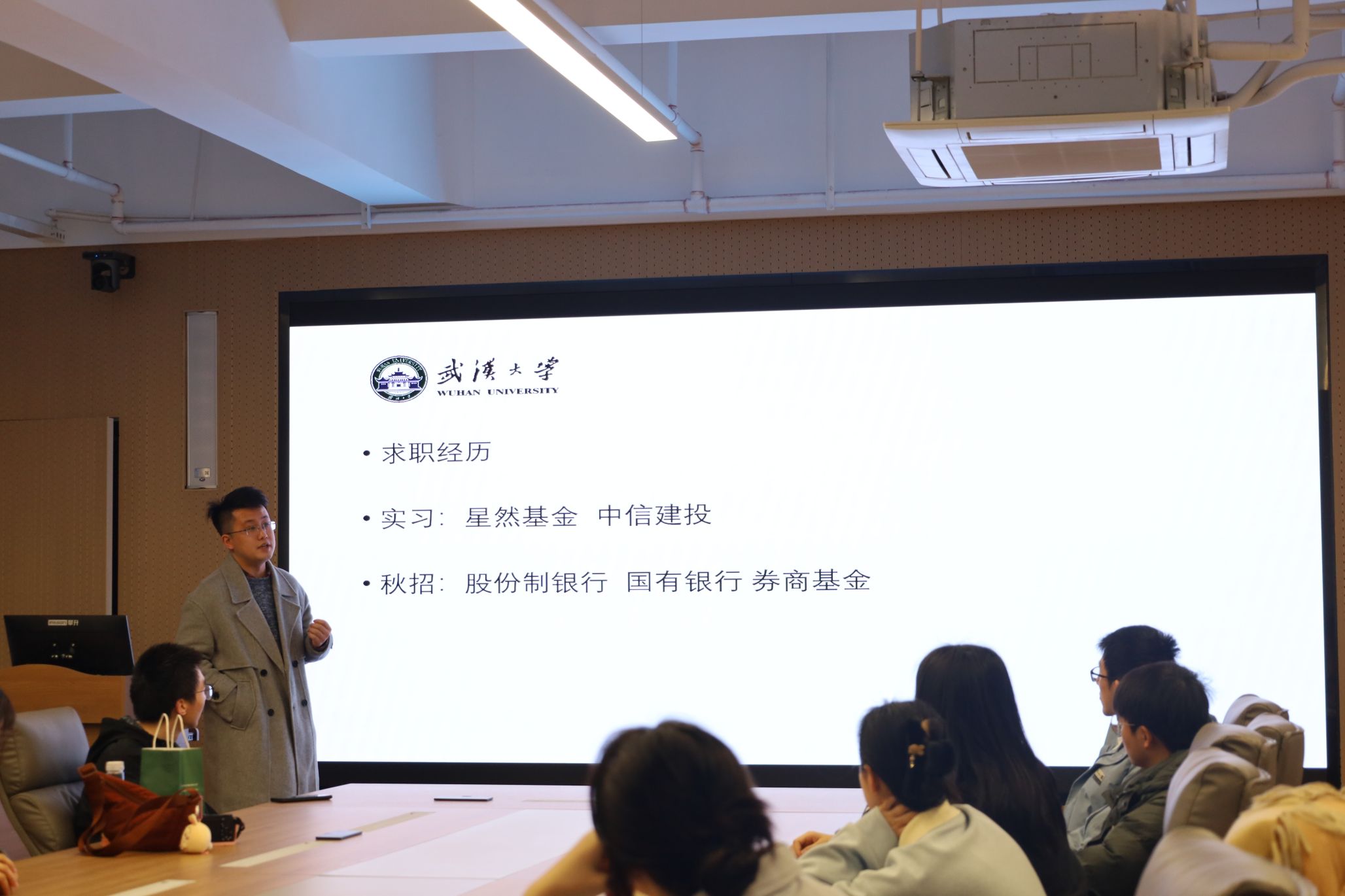 金融就业方向,邓海同学结合量化实习经历与秋招实战经验,从金融单位精准筛选、笔试核心考点备战、多元化面试技巧三个方面展开分享,叮嘱同学们夯实金融专业知识功底,针对半结构化、无领导小组讨论等多种面试形式做好全面准备,以专业实力应对金融行业求职挑战。