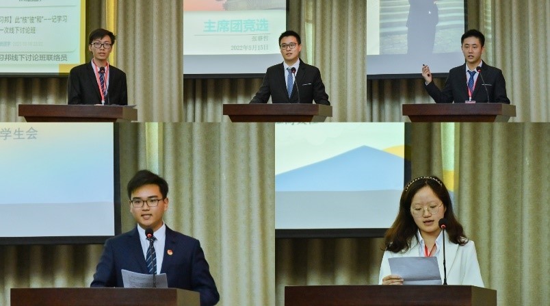思想政治教育活动完成的更有创意、更有深度的建议。张蔚泓表示,自己积累了策划和组织活动的相关经验,能够充分发挥自身优势,做好学生会与学生之间的纽带,以求真务实的态度踏实工作。刘曹仪强调,学生会主席团成员应具备责任心、创新性、细致心,了解学生真正的需求,借鉴以往先进经验,改进缺陷。