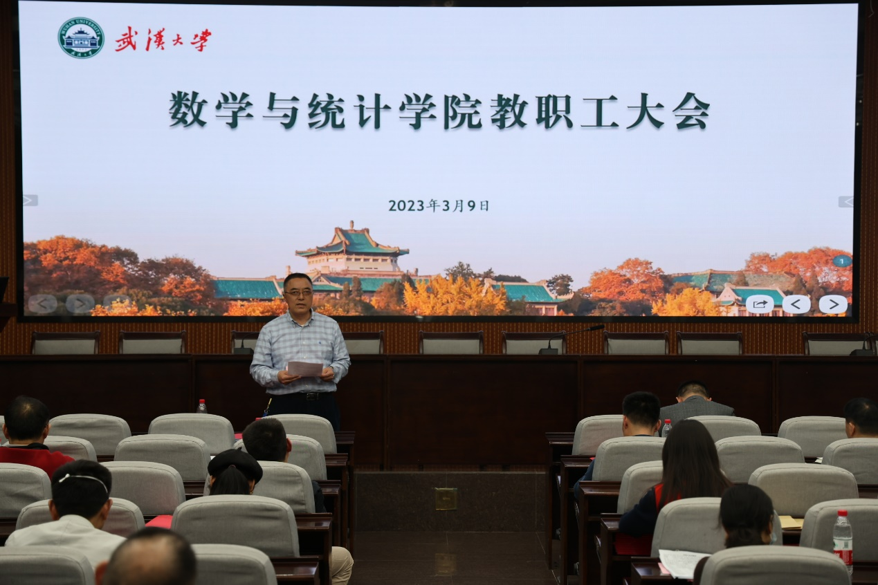 赵会江传达了学校春季干部培训班精神和工作要求。他阐释了校长张平文院士所作的“凝魂聚力、守正创新,以高水平学科建设深入推进学校高质量发展”的主题报告,通报了副校长宋保亮院士所作的 “筑牢学科根基,提升治理能力,推进高质量学科建设”的专题报告。他号召,全院教工要把思想和行动统一到学校的决策部署上来,凝心聚力谋发展,潜心竭力育人才。