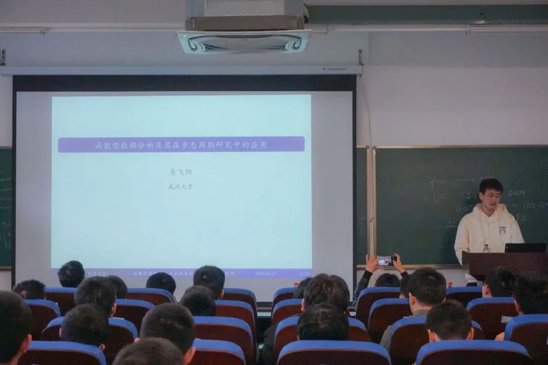 2019级数学弘毅班学生易飞阳做了《函数型数据分析及其在步态周期研究中的应用》报告。在报告中,他结合应用场景介绍了函数型数据分析中的一些主要理论与技术,并以运动捕捉数据集为例,简述函数型主成分分析与主微分分析在步态周期研究中的应用结果。