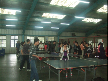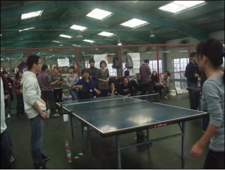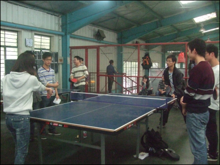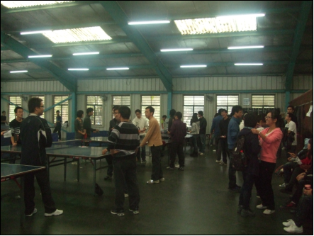 为了吸引更多的研究生参赛,同时考虑到女生的弱势,本次比赛设立了有趣而合理的女权规则:单打女对男,则所有发球权归女生,比分从5:0开始;双打如果是混双对男双,则女生对应的男生的发球权归女生,比赛也从5:0开始。比赛的同学很早就来热身了,还有很多观战加油的同学。经过研究生会体育部提前周密的安排,比赛工作进行的有条不紊。随着比赛开始,掌声,笑声,击球声,声声入耳;女双,男双,混双,双双默契;抽球,旋球,吊球,球球精彩。现场紧张而热烈,温馨而开心。