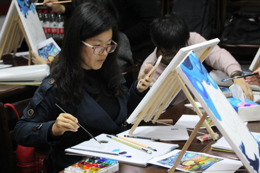 来自经济与管理学�2017级博士生王同学说:“刚开始画的时候这里画一点那里画一点,整体把握得也不是特别好,后来慢慢地熟悉了,调色也调得越来越好了,以前没有画过这种画,完全是一次全新的体验�