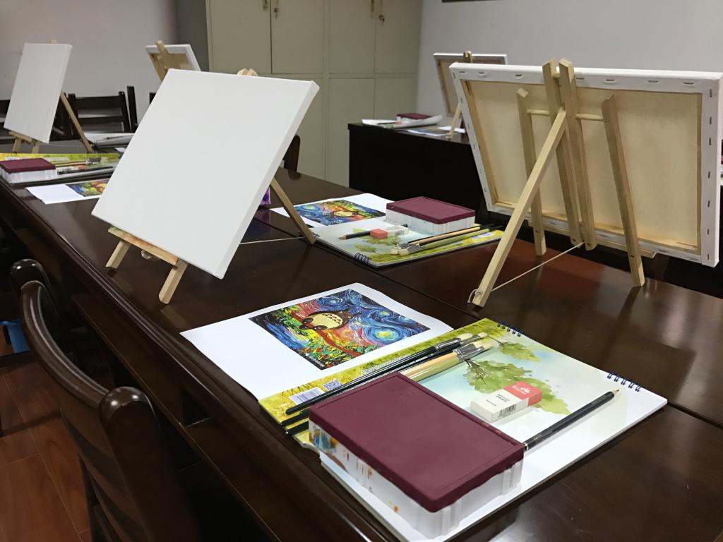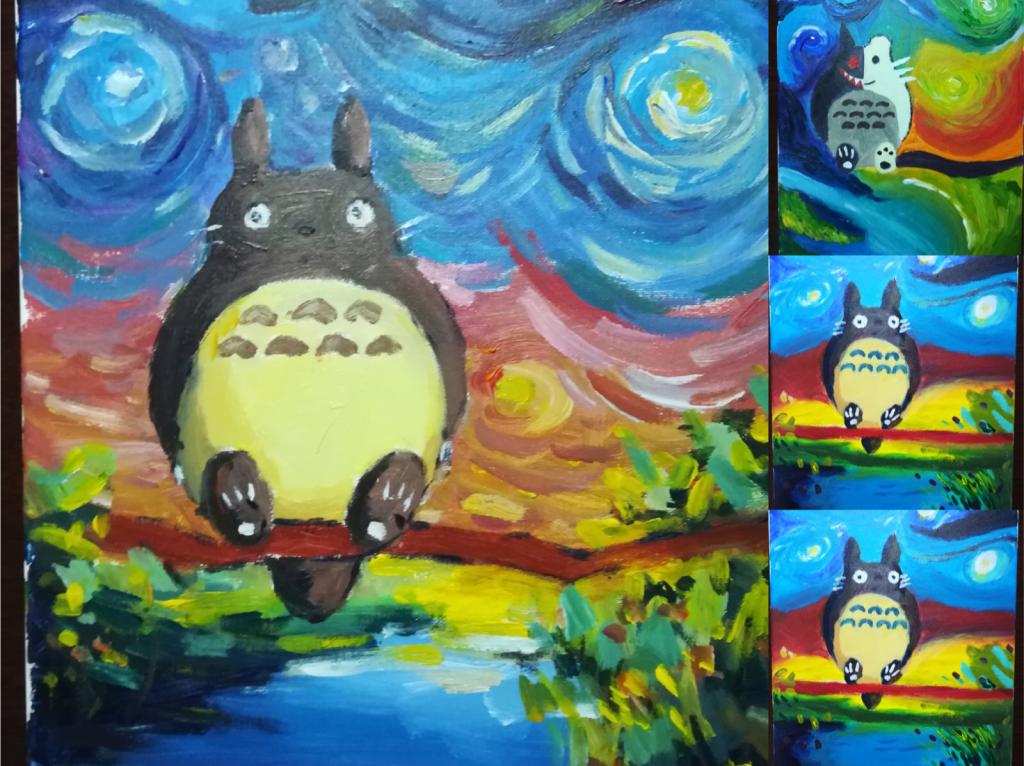 首先,小明老师为同学们讲解了选取龙猫这幅画的考虑——这幅油画色彩丰富,形象呆萌且为同学们所熟悉,非常适合初次接触绘画的同学进行临摹。然�老师为大家讲解了图中色彩的组成,并向同学们介绍了调色的原理,调色可以向两个方向调,一个是深浅度,一个是三原色的混合度�