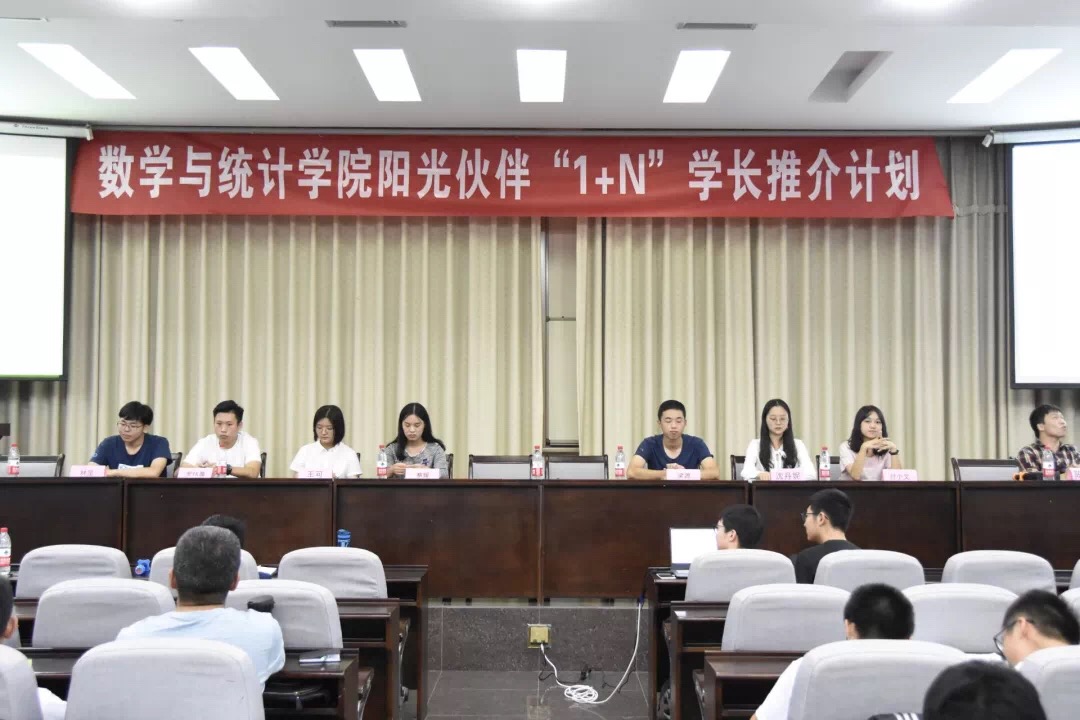 会议伊始,主持人向我们介绍了各位到场嘉宾。随后,八位优秀的高年级同学结合自身经验在学习和生活方面分别给出了建议。林涅同学为学弟学妹们分析了高中学习与大学学习的不同之处,并建议大家不要将视线局限于数学,也要用热情去对待学生工作,将大学生活过的丰富多彩;罗玮晨同学强调了目标与计划在大学学习中的重要性,并建议应该自己主动地去获取多种多样的信息,抓住机会;王可同学向大家分享了自己调整学习方法与状态的方法,并推荐了三本辅导书,使同学们收获颇丰;蔡媛同学建议学弟学妹们多钻研书本,并讲述了自己遇到困难并克服困难的经历,以此告诉大家:无论遇到什么困难都要做好自己,相信一切都会有回报;梁源同学强调了学习的重要性,并提出良好的生活习惯是学习的前提条件;沈丹妮同学同样强调了学习的重要性,也提醒同学们在学业遇到挫折时要管理好自己的情绪;付小文同学分享了自己在学习与学生工作之间协调的经验,并提出:学生工作占用的只是你玩乐的时间,即使事情再多,也不要后悔,因为这是成为你想要成为的人的过程;陈弈霖同学建议同学们要保持良好的心态与严谨的学习态度,做好每天的规划。