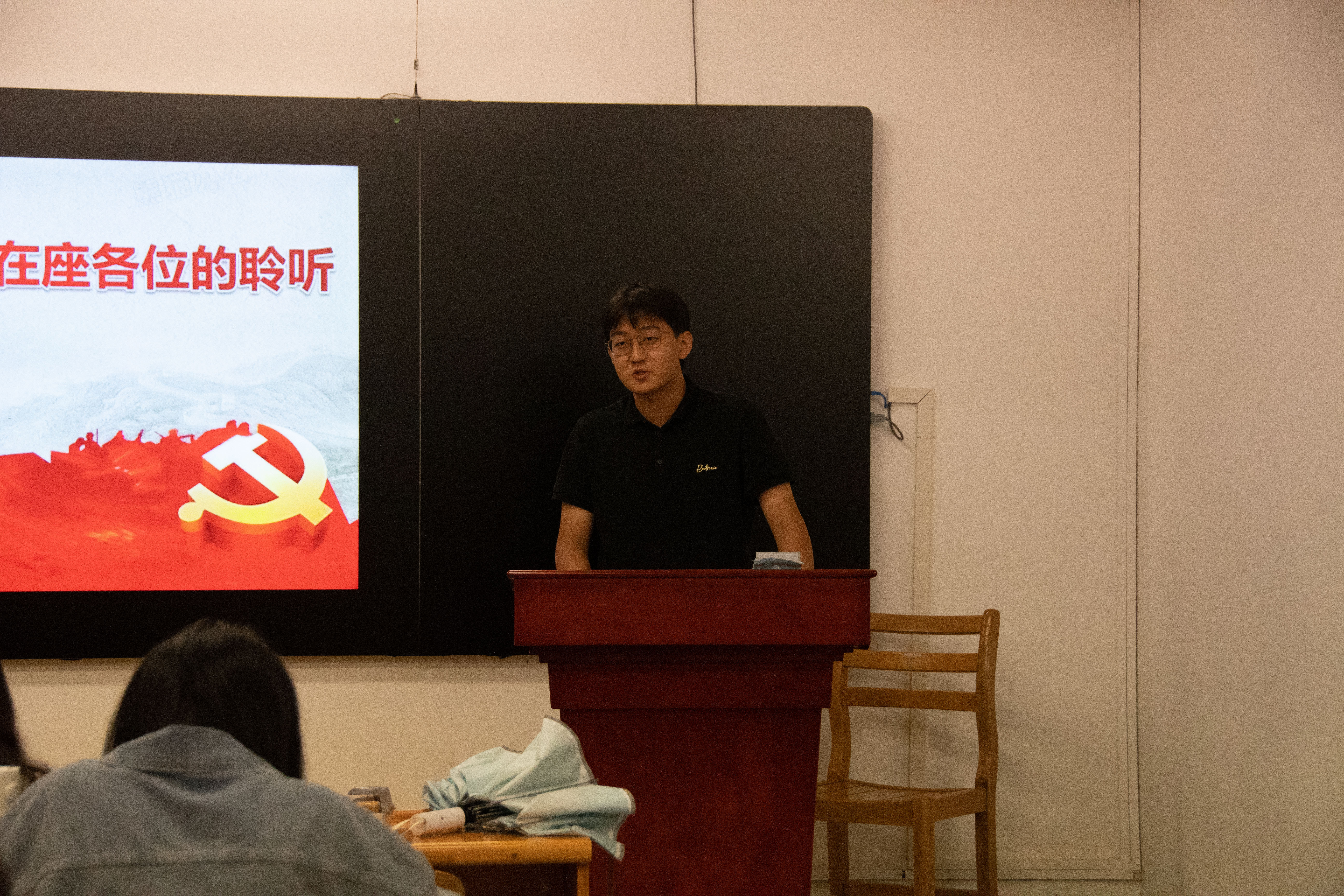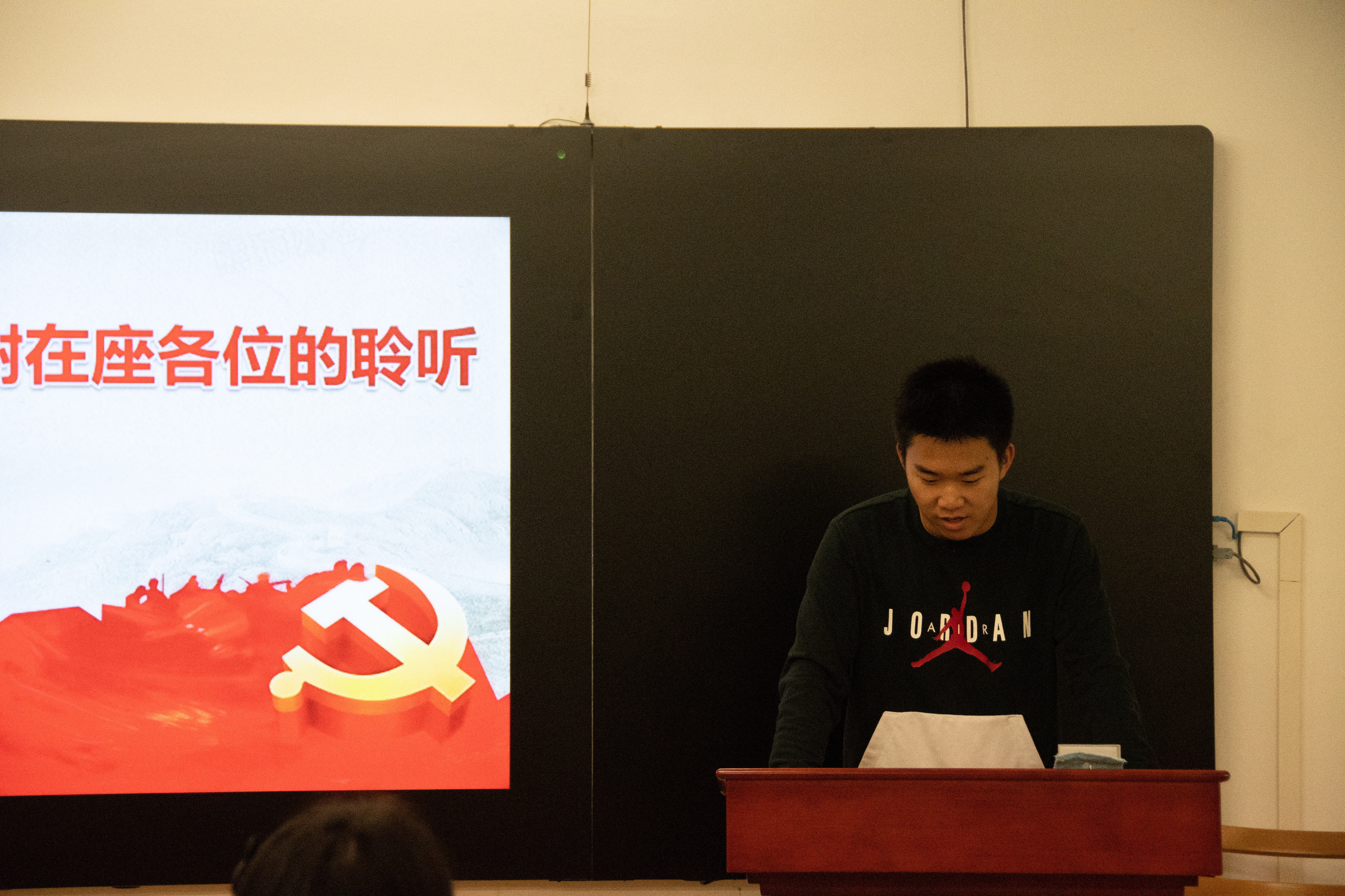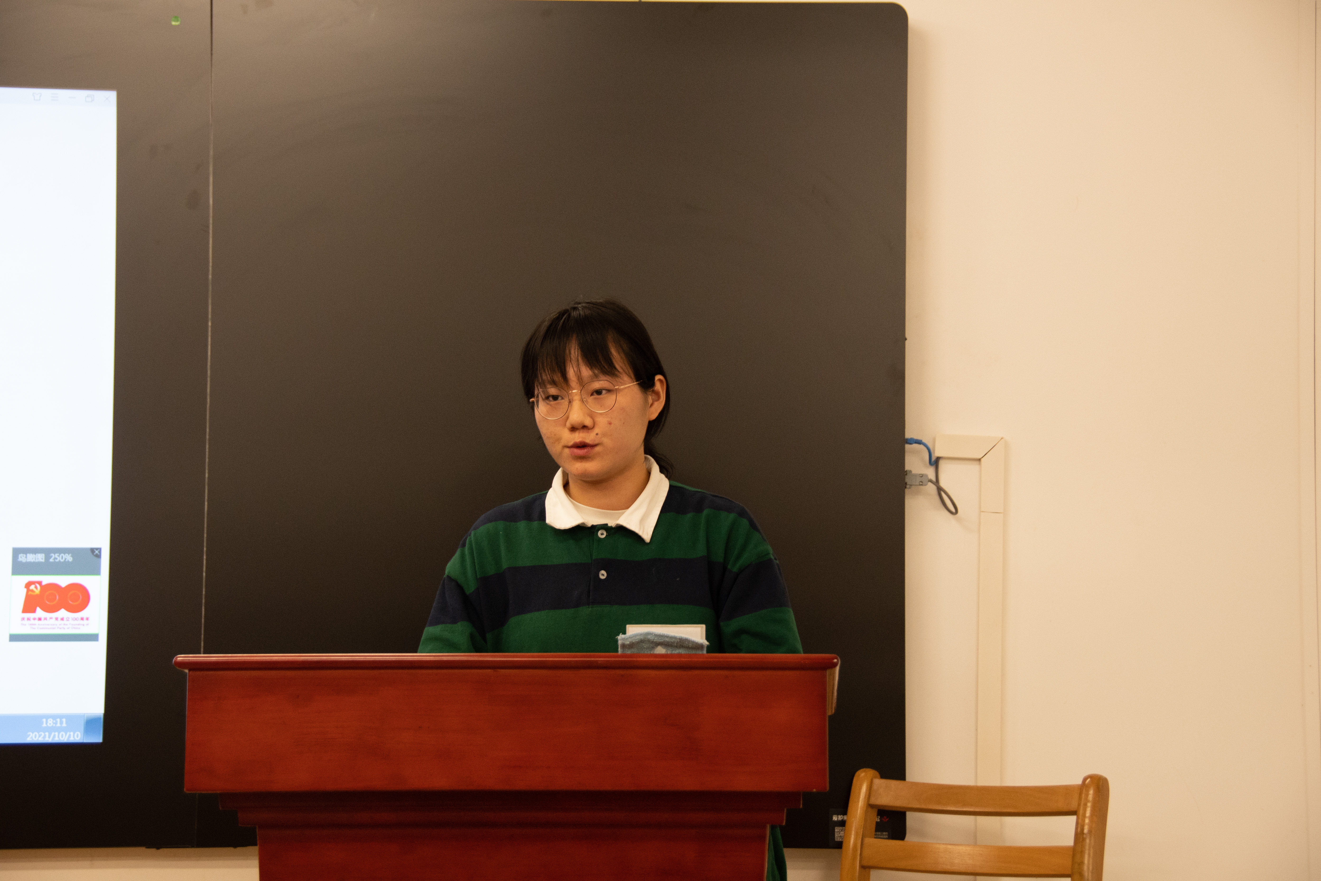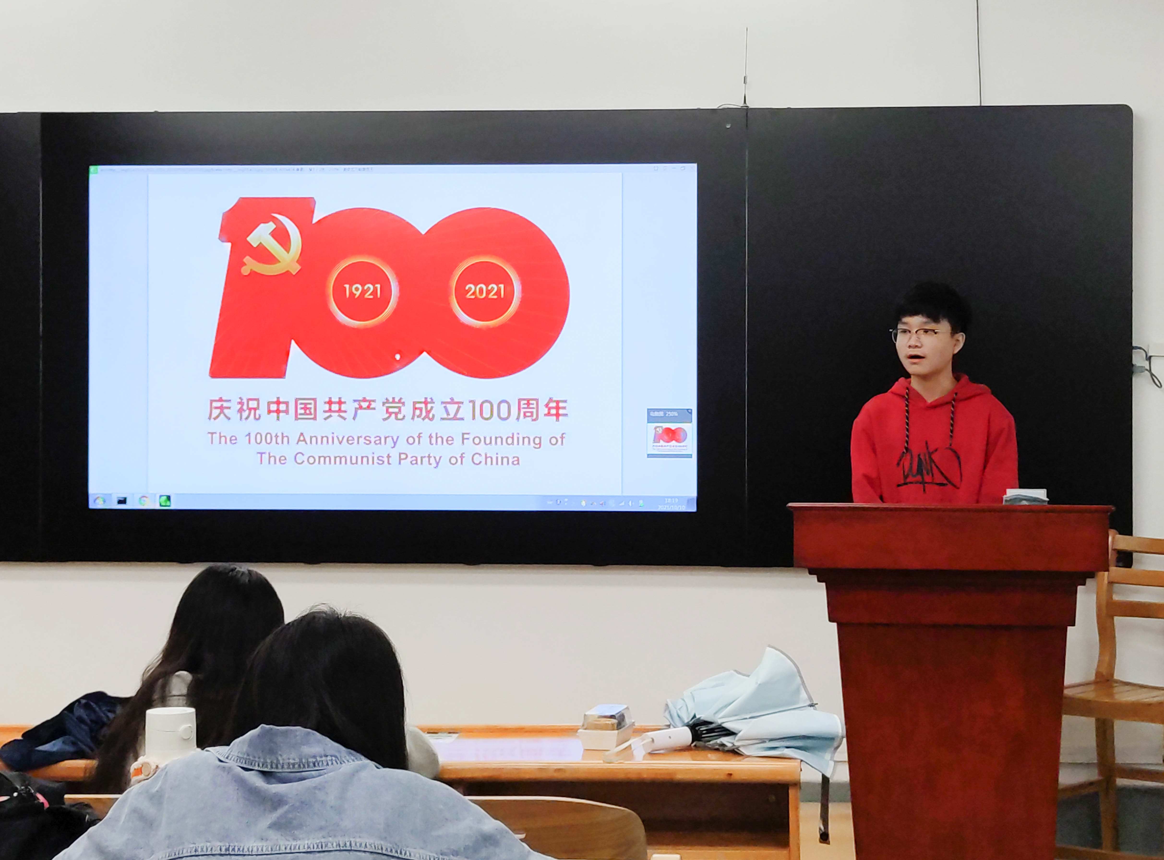 2019级统计班的胡哲是一位讲述百年党史故事的人:�在今天,在建党一百周年之际,我想作为一名讲故事的人,将曾经的故事分享给大家。有些火把在暴雪纷飞中熄灭了,有些星星在漫漫黑夜中湮没了,有些人在革命胜利前夕倒下了。我今天站在这里,是为了我的高祖父,为了许继慎、吴焕先,为了千千万万个没能等到光明的英烈们,希望你们能多记住他们一些,哪怕是一点点��