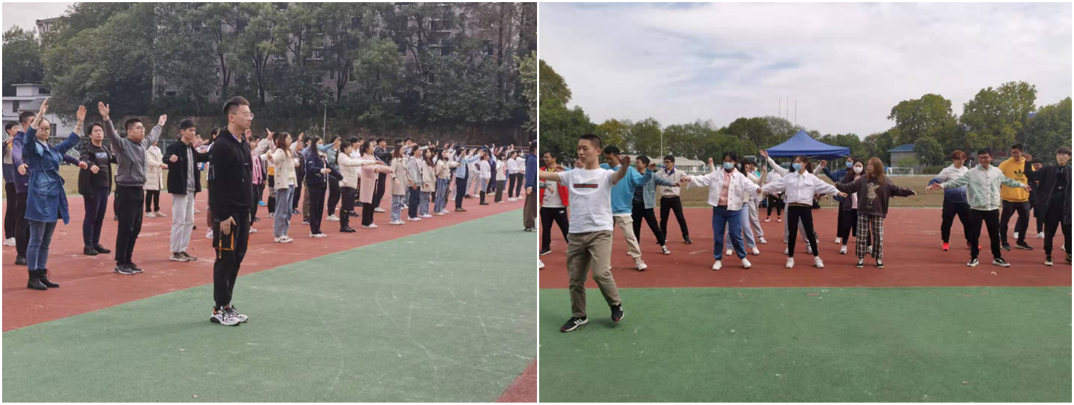 接下来,2021级学生以昂扬的姿态进场。赛前各班同学在文体委员的带领下积极练习,认真备赛。今日,金色的阳光微微洒在他们脸上,彰显出青春的朝气;刺骨的寒风从八面袭来,却夺不走他们的意气。虽然这是他们第一次参赛,但经过一个多月磨合的他们相互之间十分默契,动作整齐划一,姿态舒展大方,展现出的青春风采并不亚于高年级的学长学姐,相信通过今年的经验积累,他们能在明年取得更好的成绩!