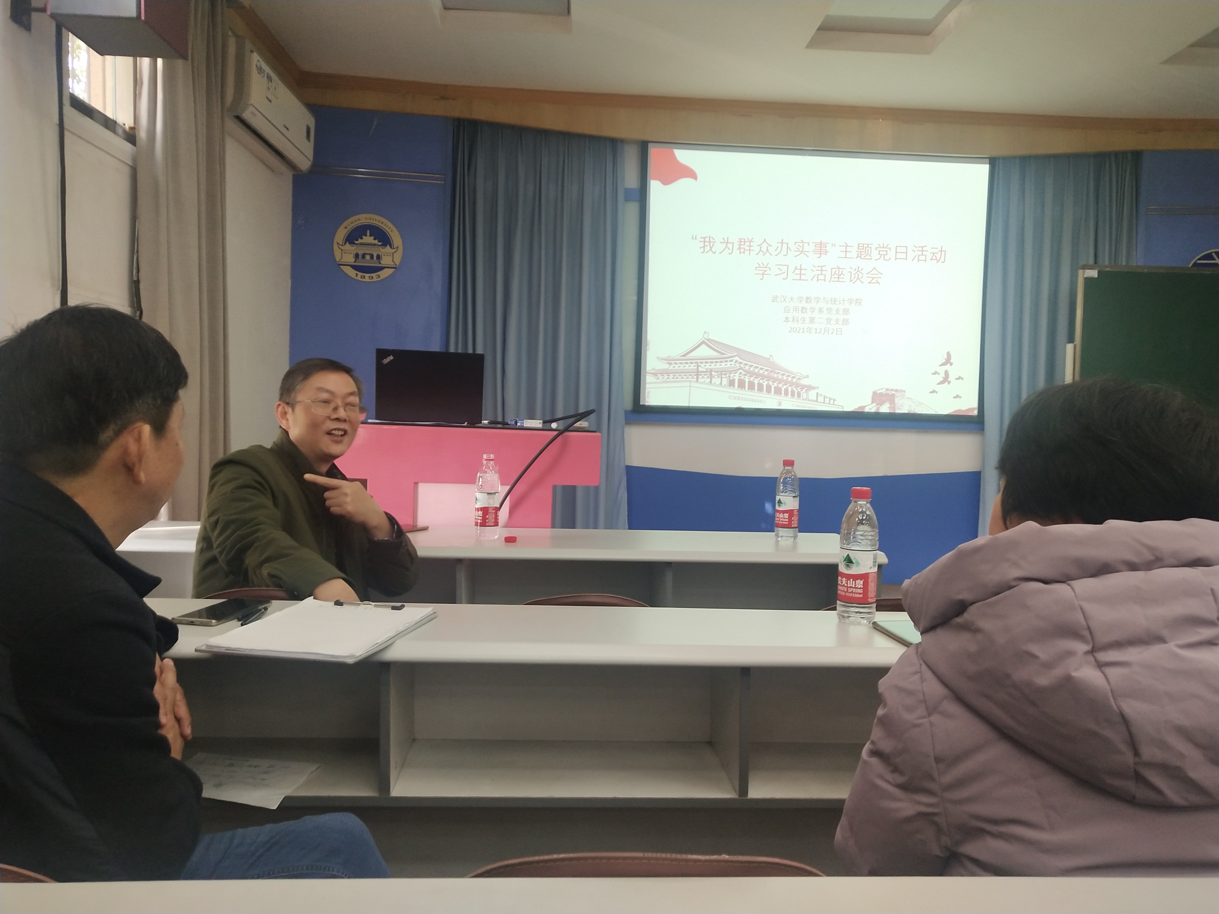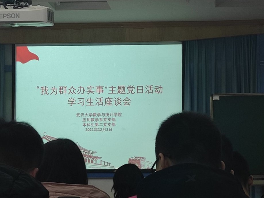 为了充分发挥基层党组织战斗堡垒作用和党员先锋模范作用,进一步深化党史学习教育“我为群众办实事”实践活动,12�2日,我院应用数学系党支部与本科生第二党支部共同开展“我为群众办实事——学生学习生活座谈会”主题党日活动。应用数学系王丽娟、羿旭明、胡元明、胡捷、吴晓群和雷玲等六位教师党员出席活动,参加活动的还有本科生第二党支部党员及其他各年级本科生。座谈会由本科生第二党支部书记王健主持�