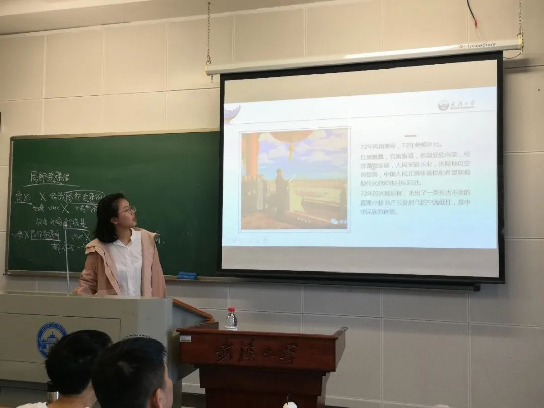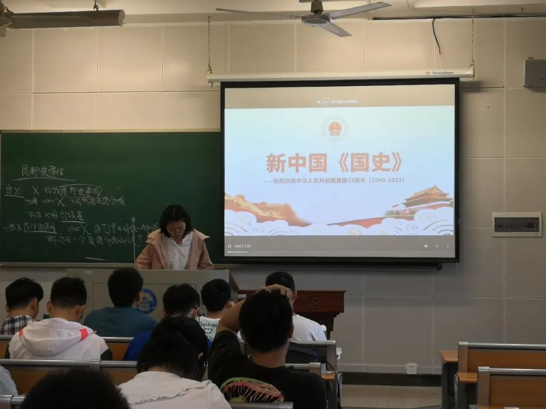 活动第一部分,曹洁从建国十个时期带领同学们回顾中华人民共和国成立72周年历史进程,即新中国成立、巩固政权、过渡时期、社会主义探索、文革时期、真理大讨论、改革开放、第三代领导集体时期、进入21世纪和中共十八届一中全会。曹洁展示了新中国72年的光辉历程、伟大成就、宝贵经验,总结阐发了其中蕴含的规律性认识和启示意义。
