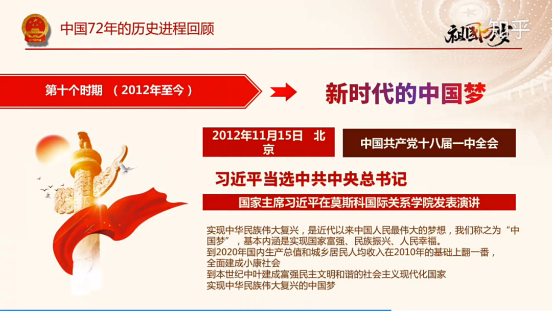 本次活动由四个部分组成,包括回顾中华人民共和国成立72周年历史进程、重温中华人民共和国成立72年创造的伟大奇迹、深刻感悟历史以及分享国史学习心得。