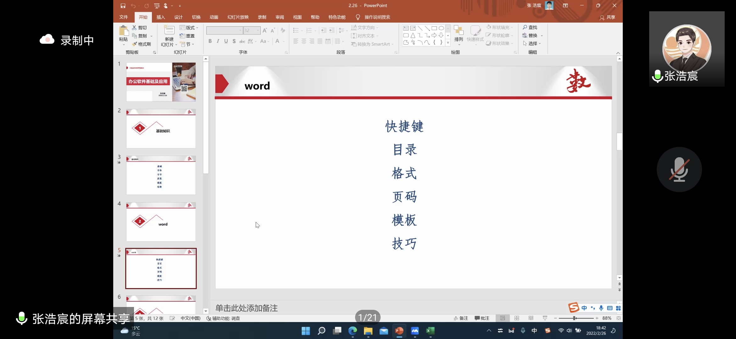 雨送冬音,繁春已至,值此时节,第十三期“未来学院”文数信分校�2�26日线上进行开学第一次授课,全体“未来学院”文数信分校学员参与学习。本次展示课以“办公软件基础及应用”为主题,由数学与统计学院的张浩宸同学讲解,帮助学员掌握办公软件应用技巧,提高工作效率,加强办公素养�