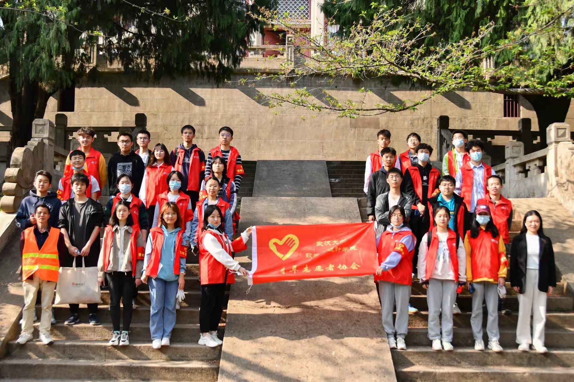 武汉的四月,温度迷人,草丛中是一道道鲜红的身影,一双双手清理着那难缠的杂草。志愿者们辛勤劳作,让樱花大道美观而大方。在清扫落叶的过程中,志愿者们切身感受园林工作者的辛苦,看着逐渐整洁的山坡小路,志愿者们体会着团结和奉献的重要性。