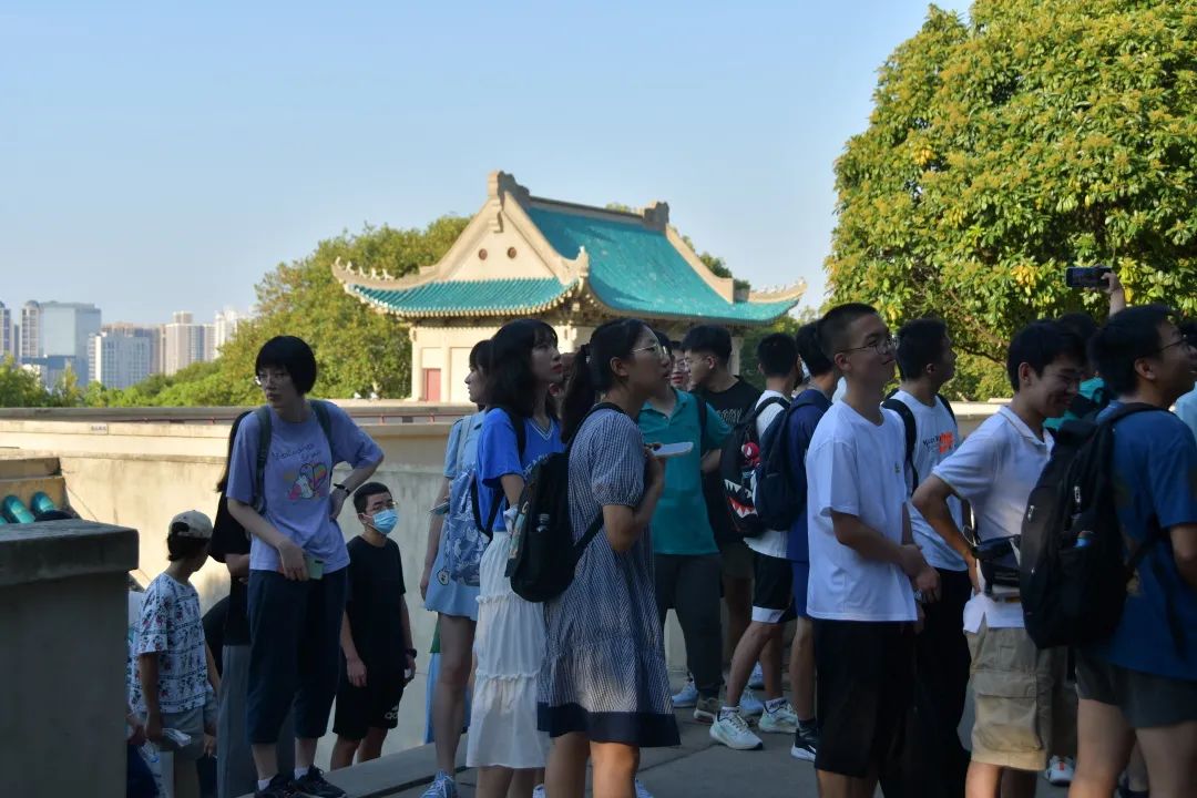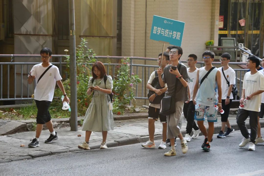 2022年8月19日上午7:00,2022级数院新生们在校史馆特邀讲解员的带领下,在由学长学姐组成的志愿者团队的陪伴下,分批次开始了游园之旅。