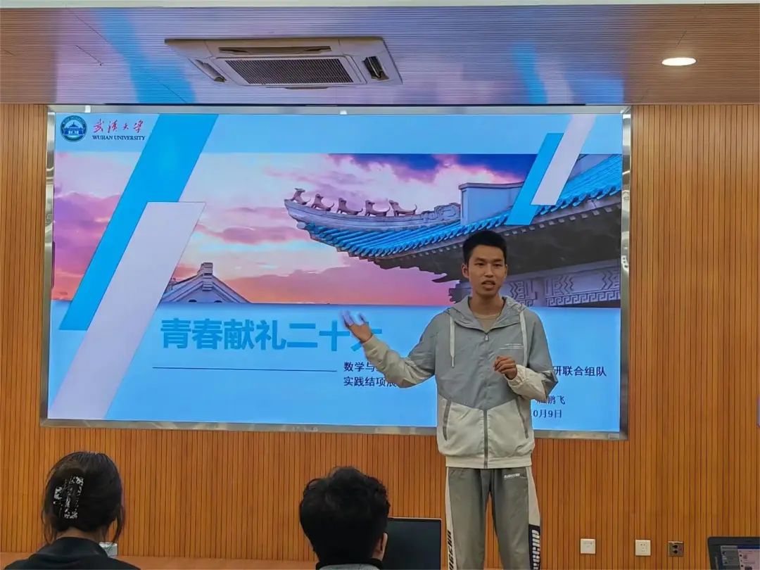 接下来分享的是来�“数院暑期赴恩施宣恩青春献礼二十大实践队伍本研联合组队”的屈鹏飞同学。在分享过程中,屈鹏飞同学提到,在经过基层实践后团队成员们意识到,基层工作人员不仅要做到以理服人,同时还应具备灵活处理事件的工作能力,这样才能做到于情于理都能让人心服口服。此外,实践队在本次实践过程中还将本专业理论应用于实践,从搜集各方数据到进行专业的数据分析,为两院同学提供了优秀的实践范例�