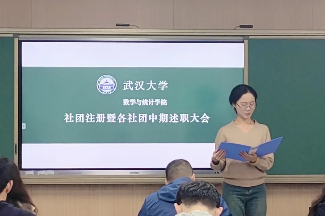 各社团进行风采展示与述职。乒乓球协会、男篮、女篮、礼仪队、珞珈数学等14个社团轮流上场,答辩人讲述了社团工作总结、取得的成果、未来规划等内容。展示结束后,评委们就各社团具体情况进行提问,并为社团进一步发展提出了一些建议,如加强活动宣传力度、进一步完善组织架构、继续优化运作模式等。