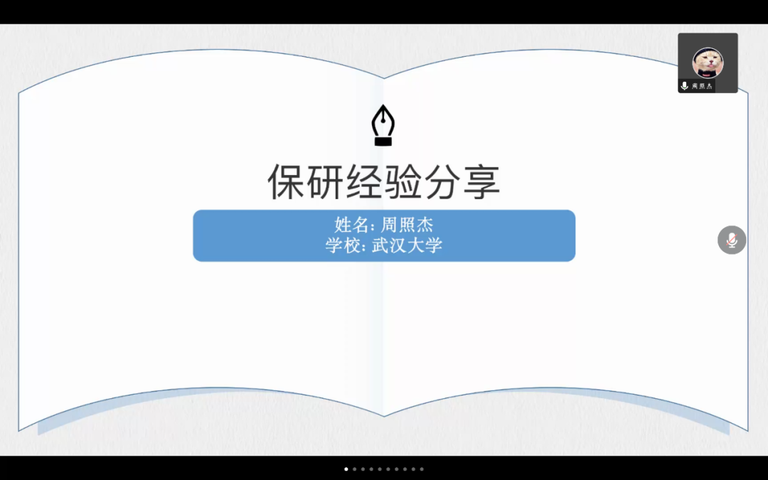 上午场的分享会于上午9:00开始,由2020级学生会成员张荣恩主持,我们邀请到了2019级的优秀学长学姐曹洁、刘禹希、周照杰、彭睿骁、衣孝儒和别品贤。