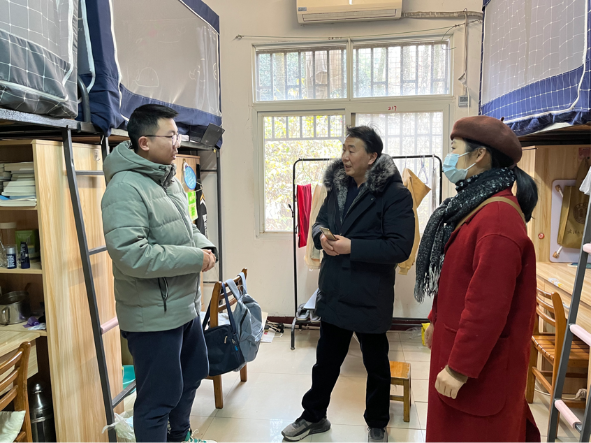 1月16日下午,院党委副书记汪思明、学工办主任胡法拉、团委书记刘宇晖走访学生宿舍,看望寒假留校学生。