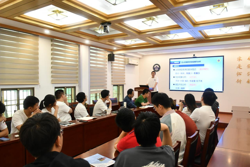 2020级数学强基班本科生朱超俊做《无人机纯方位无源定位及位置调整》报告,介绍了他在数学建模比赛中的学习成果,展示了数学知识在无人机方阵调整中的应用;笔趣阁app