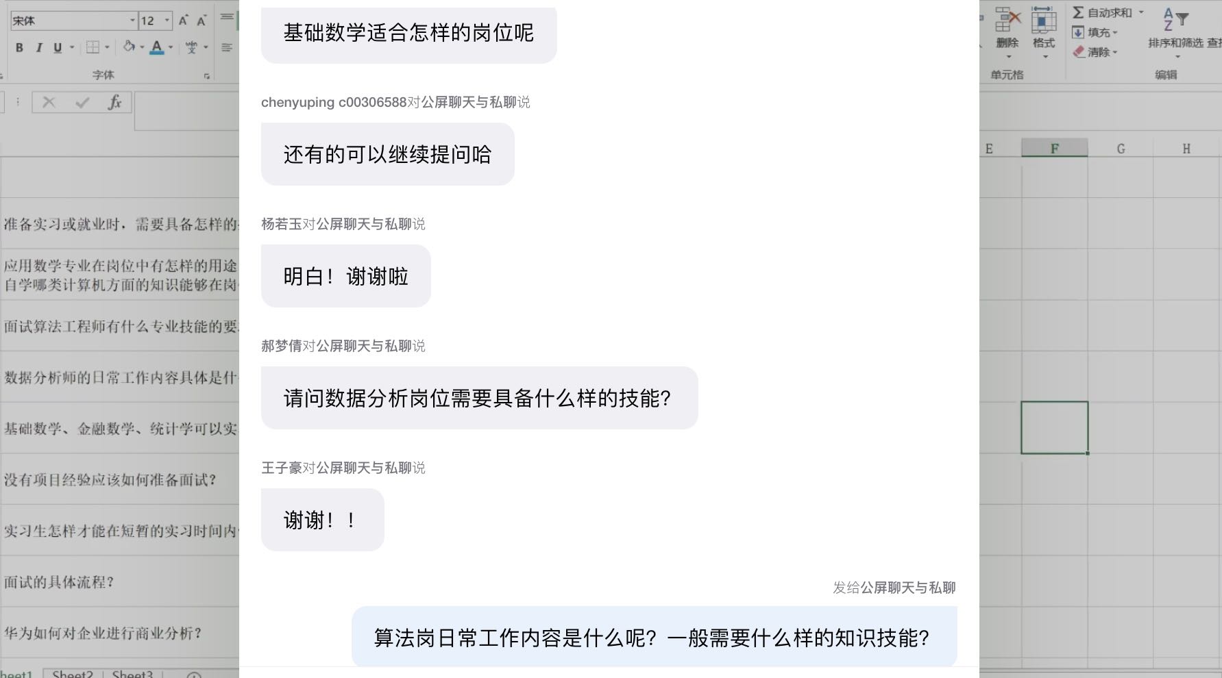 最后,范俊主管说到部门里许多人才都是数学专业里面毕业的,他肯定了数院同学的能力,希望大家大胆尝试,也希望以后有机会和大家面对面交流回答大家的提问,期待大家能够加入华为!尹艳艳经理也对2022年华为实习的信息进行宣传,希望大家能够积极投递简历。