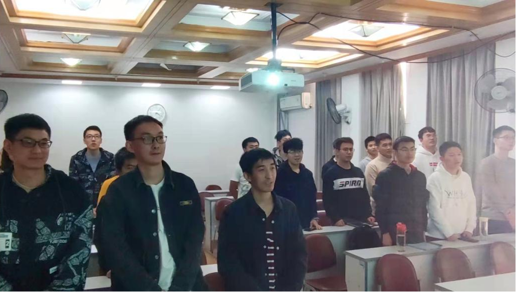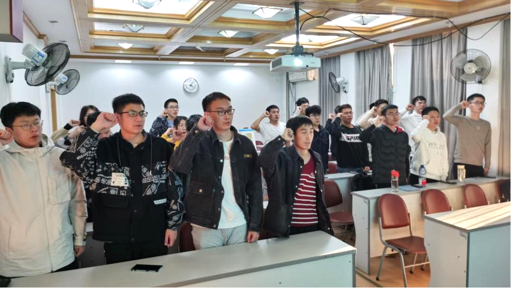为唤起每一位团员的团员意识,时刻牢记自己是一名共青团员,自觉加强组织性、纪律性,进一步加强我们支部的向心力与战斗力,由团支书董华带领大家重温入团誓词。同学们全体起立,右手握拳,高声念出入团誓词,宣誓声在报告厅回荡,大家坚定的目光和铮铮的誓言展现出团员青年坚毅的决心和信念!