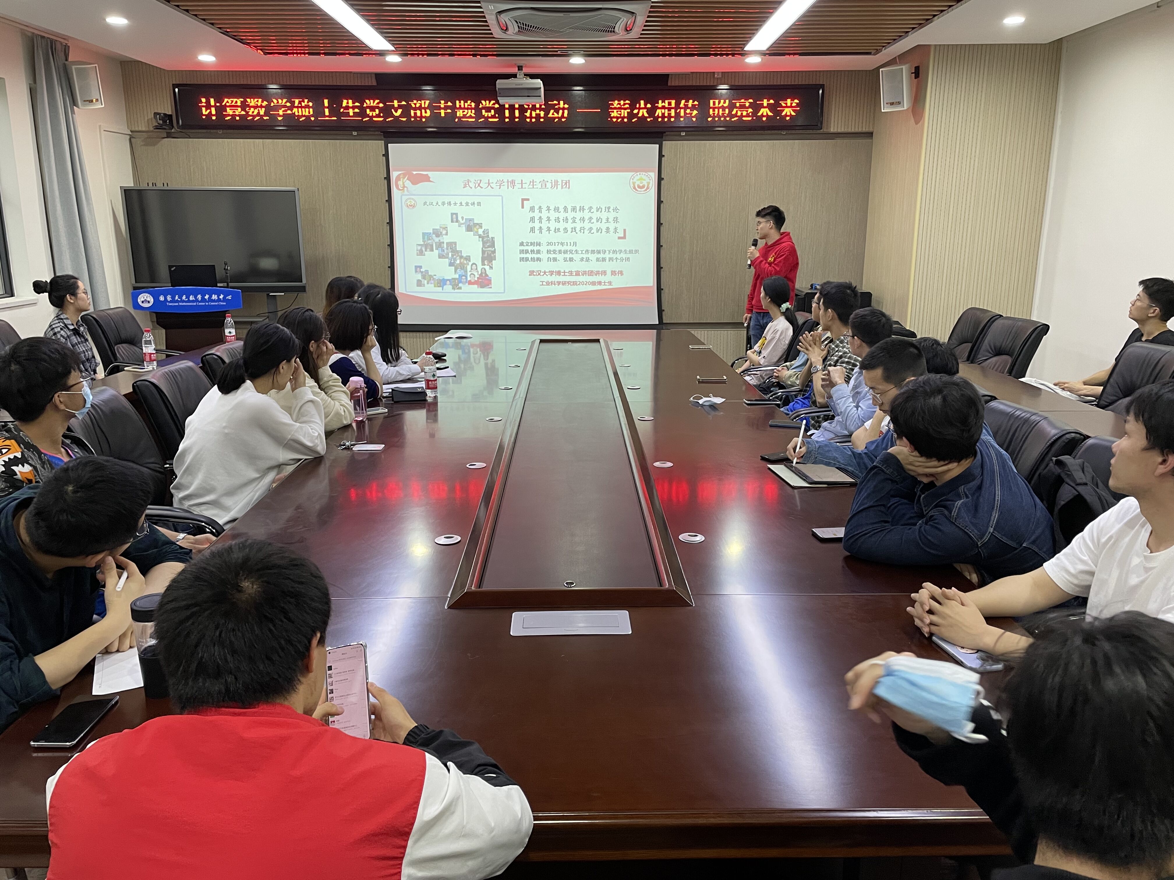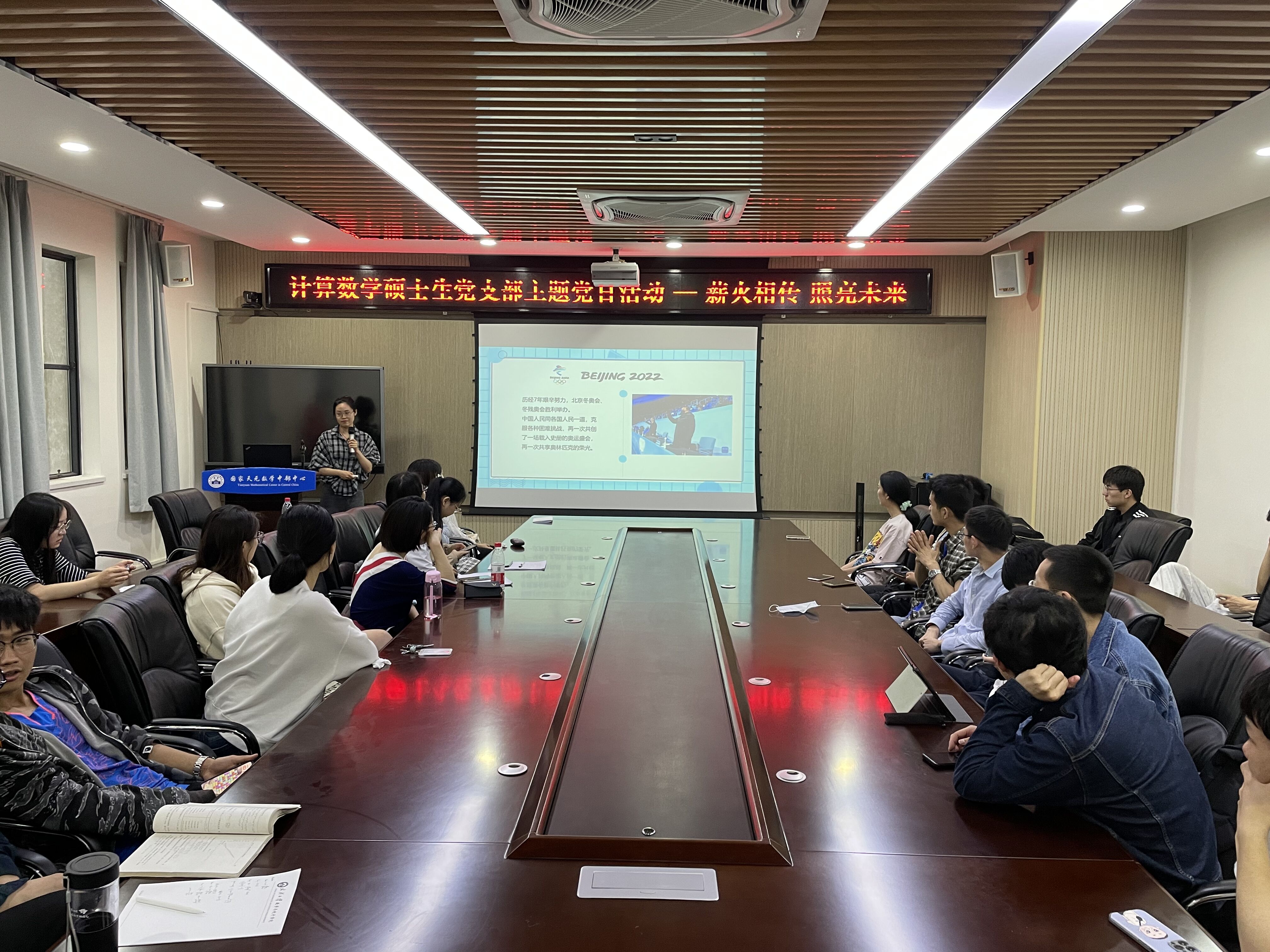 2022年4月22日下午,笔趣阁app 计算数学专业硕士生党支部联合2019级计算数学团支部于学院东北楼302会议室开展了以“薪火相传照亮未来”为主题的党团活动。本次活动邀请了笔趣阁app 博士生宣讲团的陈伟、张弛两位讲师,分别以“井冈山精神”和“冬奥精神”为纲,带领在场的20余位党员、团员共同回顾了一场中国共产党波澜壮阔的奋斗历程。本次活动旨在“以党带团、党团联动”,活动由计算数学专业硕士生党支部书记郝梦倩主持。