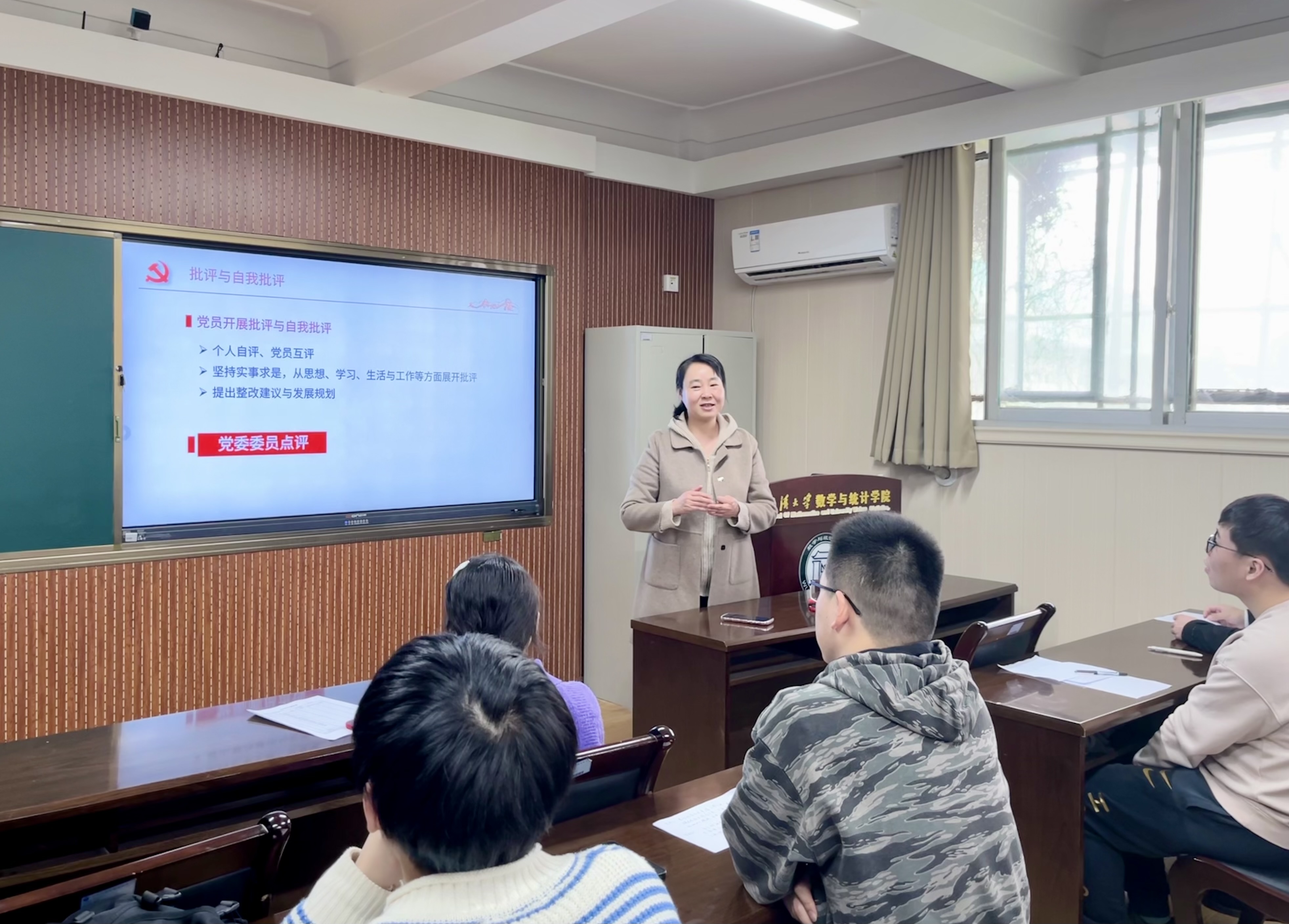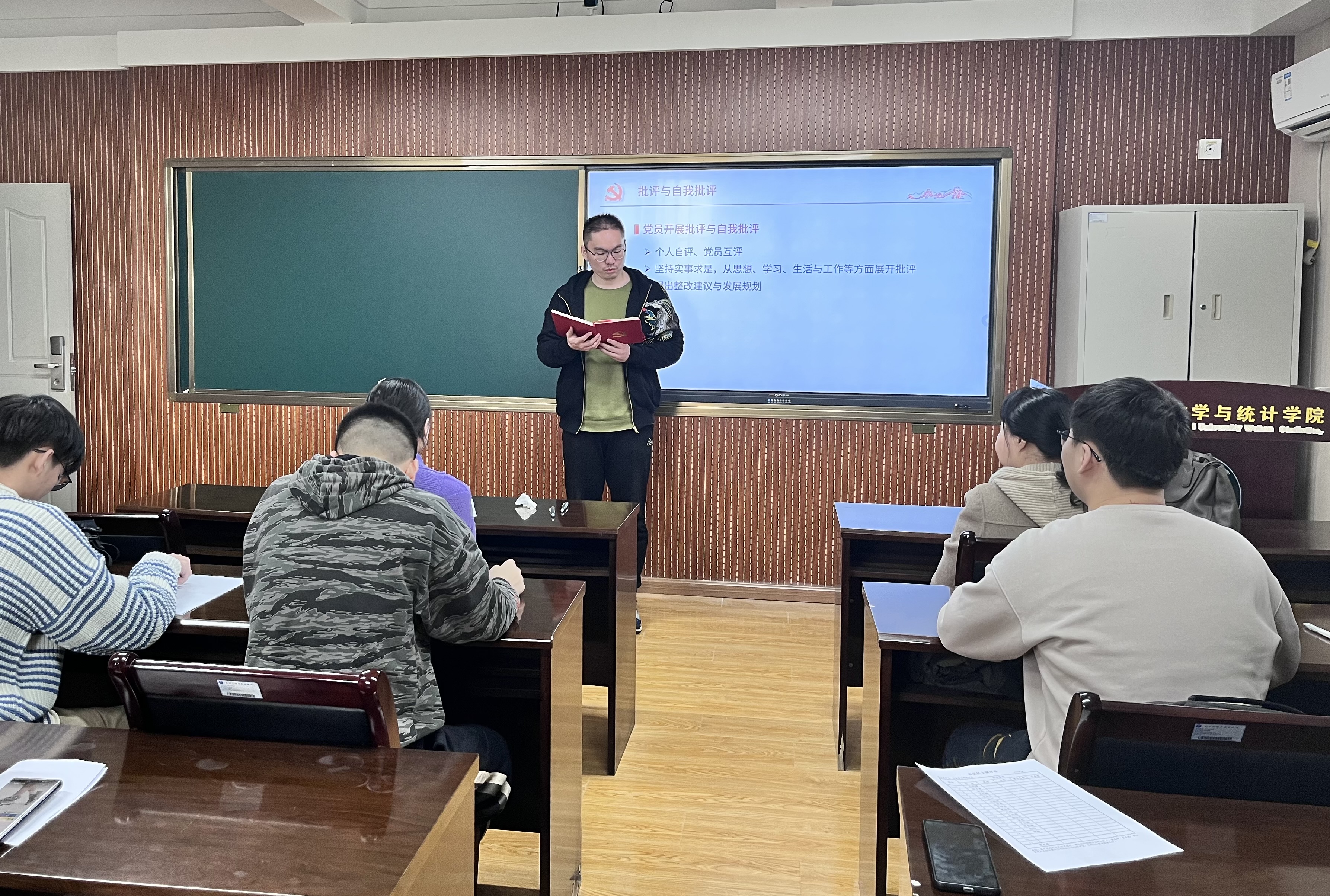 支部全体党员结合自身情况,坚持实事求是的原则,从思想政治、学习生活以及学生工作等方面展开自我批评,检讨目标与具体实践的偏差,提出整改建议与发展规划,并通过党员互评对其他党员提出目前存在的问题与建议。