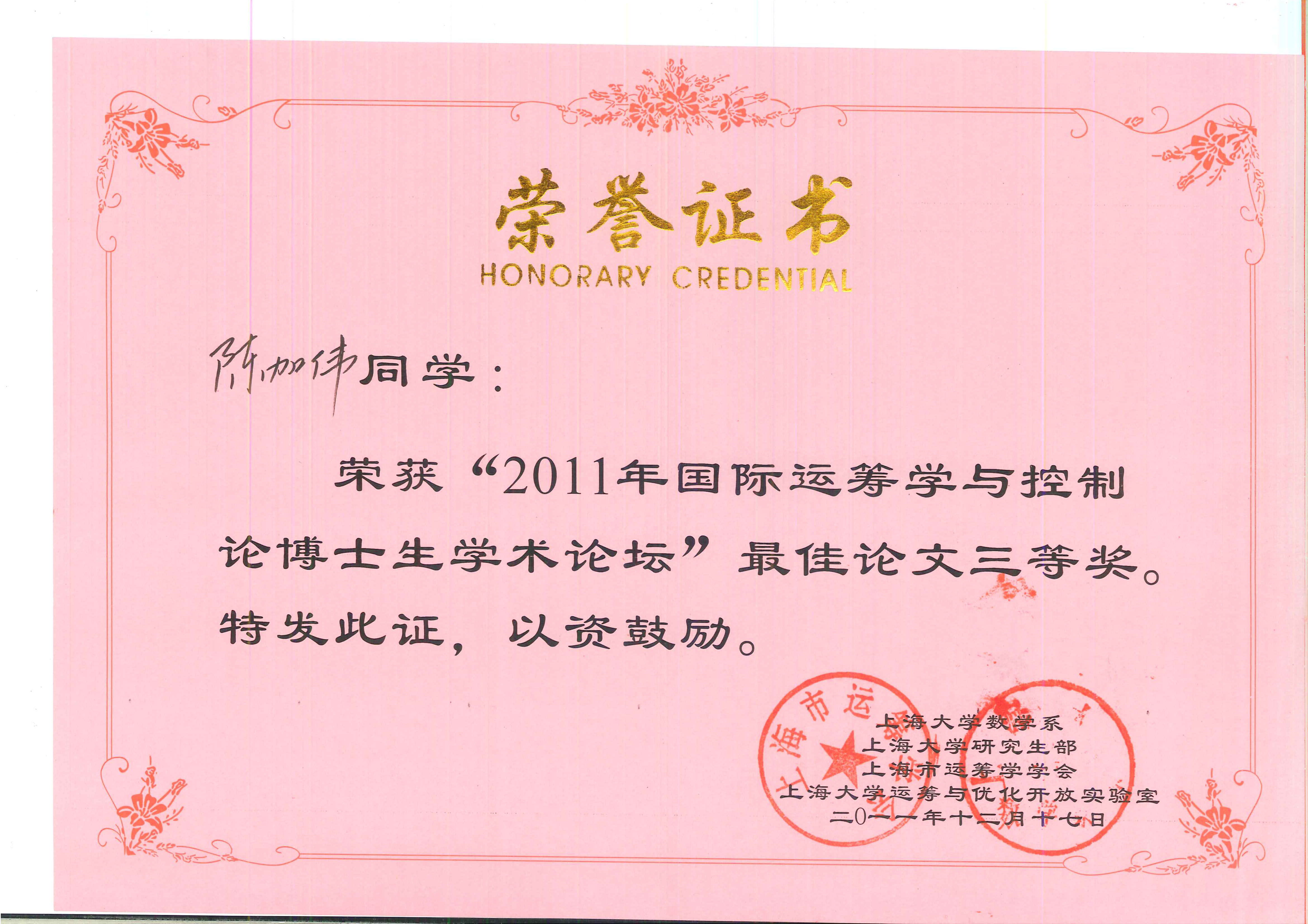 笔趣阁app 2010级博士生陈加伟参加第五届中澳最优化理论、方法及应用研讨会(暨运筹学与控制论博士生学术坛),并荣获 “2011年国际运筹学与控制论博士生学术论坛”最佳论文三等奖,特此报喜!