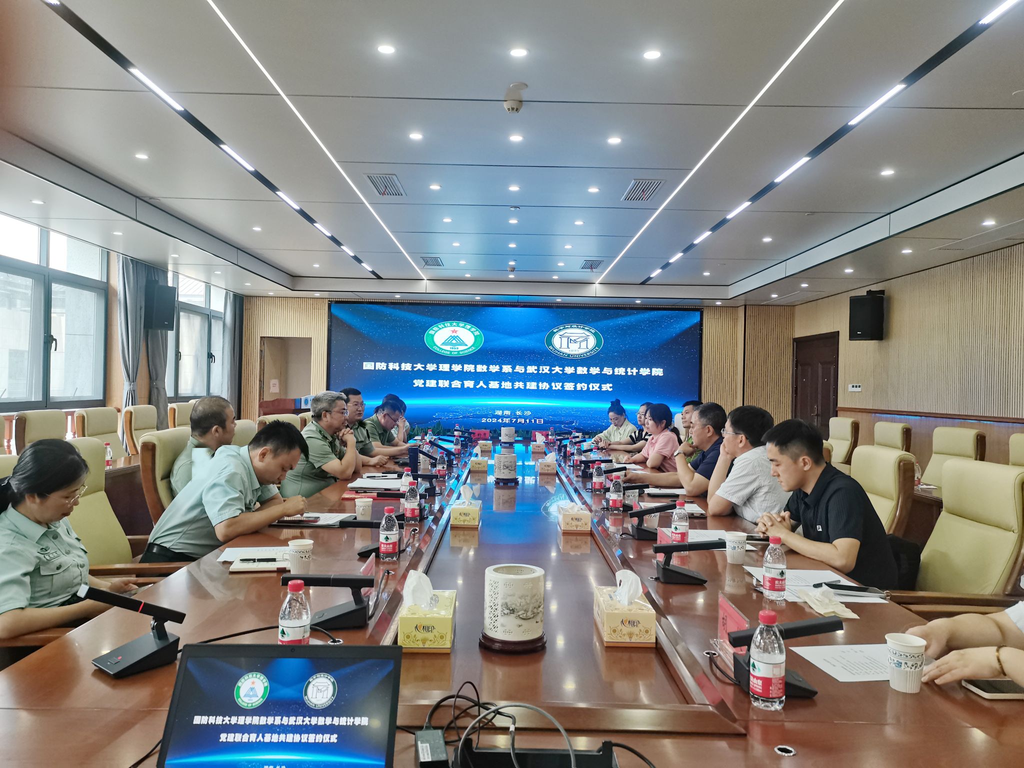 7�11日下午,院党委理论学习中心组(扩大)赴国防科技大学开展交流学习,我院党委与国防科技大学理学院数学系党委签订党建联合育人基地共建协议,双方将在人才培养、学科建设、科学研究、队伍建设等方面加强交流合作,通过资源共建、优势共享、协同共进,推动党建工作创新发展,促进双方单位各方面建设开新局、上台阶、见实效�