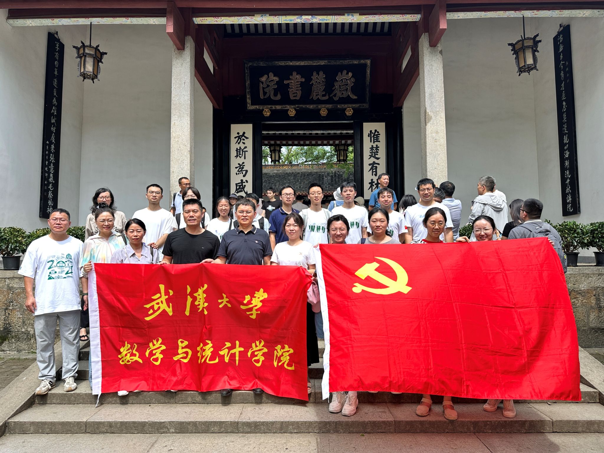 7�12日上午,院党委理论学习中心组(扩大)与学生党员代表一同探访了中国古代四大书院之一的岳麓书院,感受历史文脉,坚定文化自信,开展了一堂走着上的思政课,深刻了解了书院历经千年依旧弦歌不绝、学脉延绵的深厚底蕴�