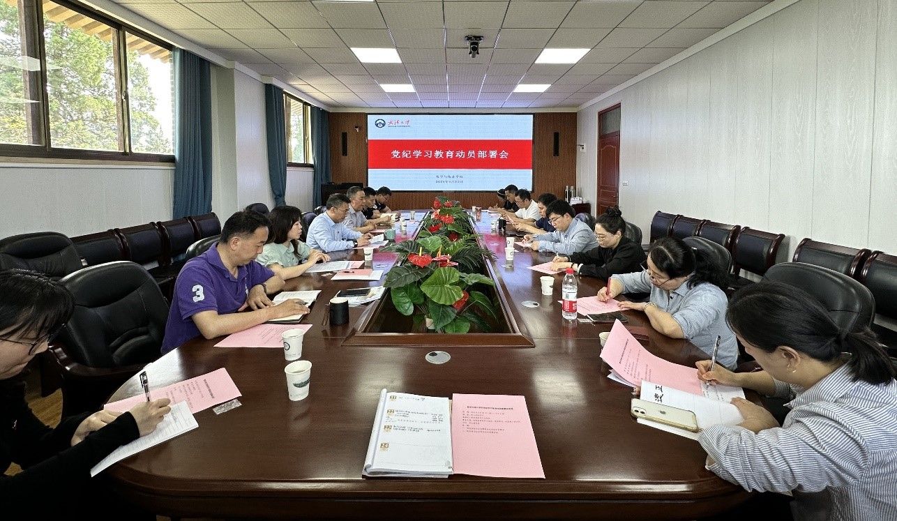 召开党纪学习教育动员部署会。院党委书记左军、院长赵会江等党政领导班子成员出席,院党委委员、在职教工党支部书记、学生辅导员参会。院党委副书记汪思明主持会议。