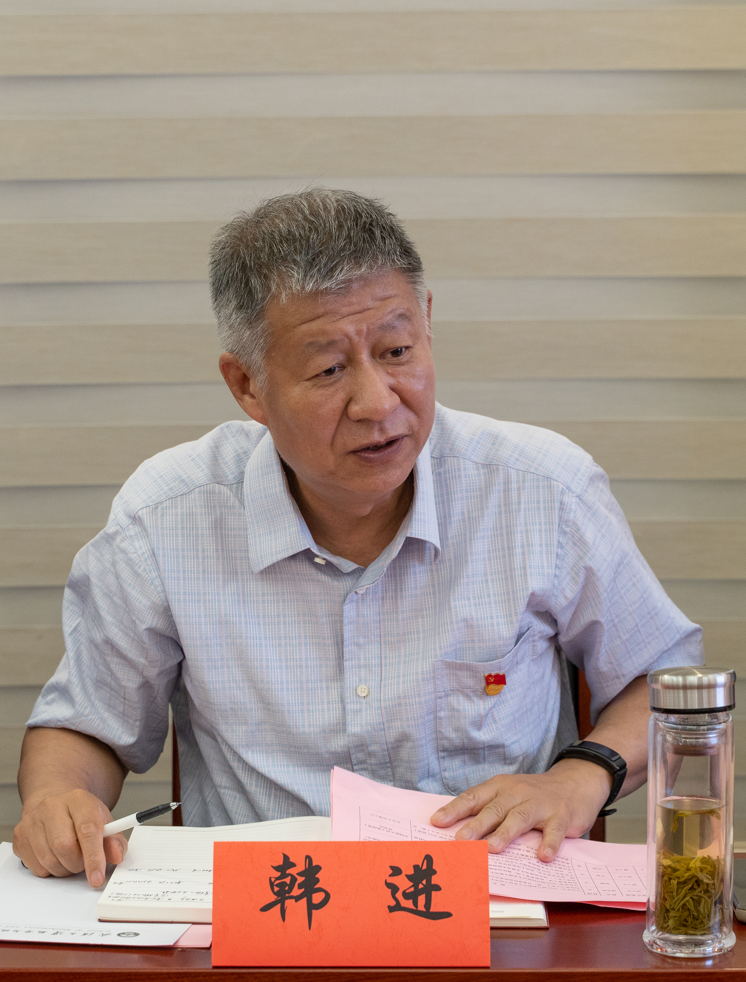 韩进全程与师生亲切互动,悉心询问了解心声,生动讲授了一堂微党课。他从点评赞赏我院师生党员自制的党史视频入题,指出学思践悟跟党走的重大意义。他结合青年学子的关注热点和成长规律,强调“坚持自信、虚心学习、不断进取”,勉励大家始终不忘习近平总书记的殷切期望,始终不忘共产党人的服务宗旨,始终不忘在母校滋养的家国情怀,牢记使命砥砺奋斗,在服务社会中建功立业,努力成为当担时代重任的栋梁之才�