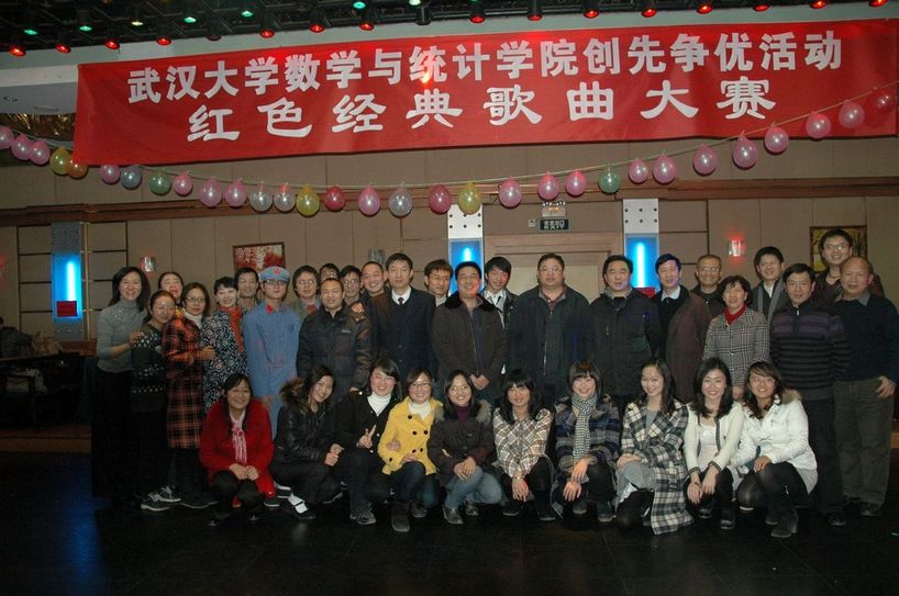 在校明珠园歌舞厅成功举行学院创先争优特色活动“红色经典歌曲大赛”,活动由院党委主办,院工会承办,湛少锋老师、刘伟安老师、胡宝清老师、胡亦钧老师、徐振华老师应邀担任评委,李好老师、赵雪荣同学、吴舒怡同学共同担任主持人。比赛在轻松欢快的气氛中进行,最后,陈化院长宣读了比赛结果:由尹常倬老师、方和平老师、黄安云老师表演的京剧《智斗》荣获特等奖;洪志明老师演唱的《母亲》、2010级硕士研究生宋平凡、杨冰演唱的《十送红军》荣获一等奖;2008、2009级本科生王秀慧、陶颖、赵烁演唱的《半个月亮爬上来》、概率与统计数学系张正良老师演唱的《天路》、张洁洁同学演唱的《我和我的祖国》荣获二等奖;应用数学系王艳老师演唱的《祖国啊我永远热爱您》、计算数学系陈国贤老师和周进老师演唱的《军港之夜》、基础数学系小合唱《大海啊故乡》、肖玉霞老师演唱的《映山红》、2010级硕士研究钱礼演唱的《歌唱祖国》、2010级硕士研究生张媛媛、何逊眉、汪琴、贾苹苹演唱的《喀秋莎》荣获三等奖。其中,2009级本科生范仲鸣还为大家带来了一曲电子琴独奏《绿袖子》、卢晓玲老师表演了独舞《在希望的田野上》、陈化院长表演了独唱《洪湖水浪打浪》、尹常倬书记演唱了《草原上升起不落的太阳》,更为比赛带来了一次又一次高潮,最后,比赛在热烈的掌声中圆满结束。(摄影:洪志明 王忠海)