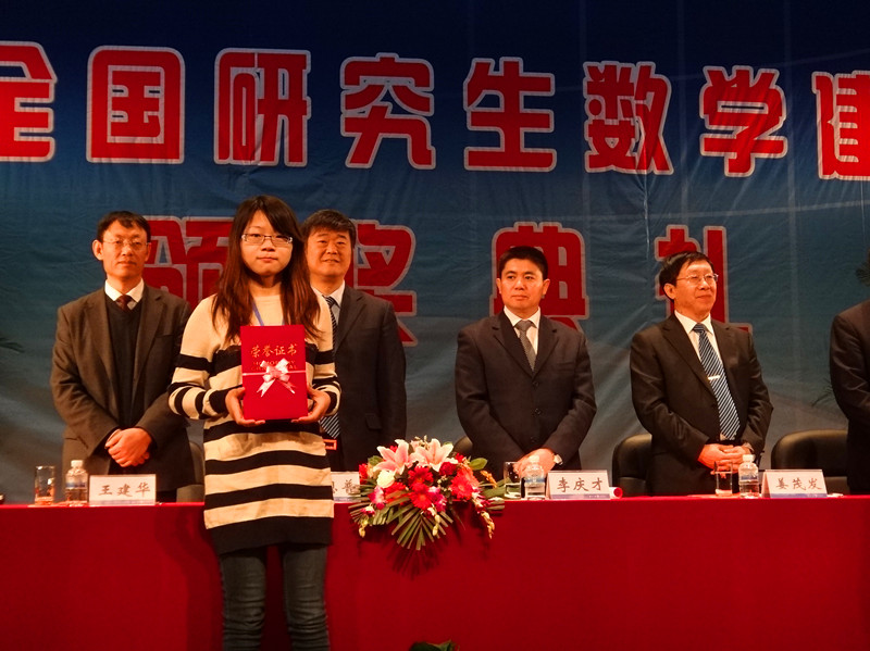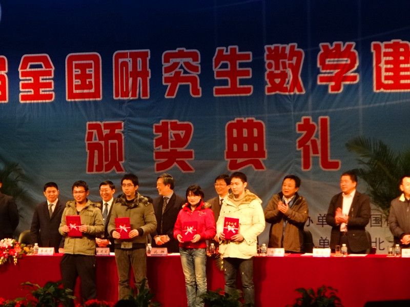 2010级硕士研究生田玉同学作为一等奖选手代表上台领奖。朱伟部长同时参加了全国研究生数学建模竞赛组委会会议。