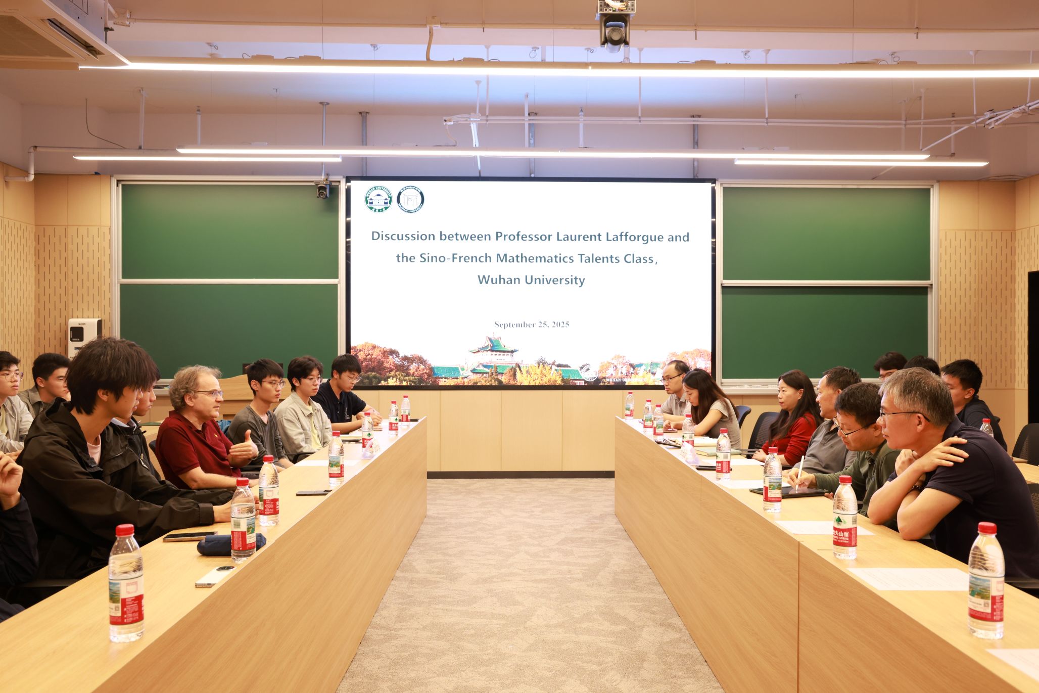 On the afternoon of September 25th, our college specially invited Professor Laurent Lafforgue, a Fields Medal winner and member of the French Academy of Sciences, to hold a discussion and exchange session with the 2024 and 2025 cohorts of the Sino-French Elite Mathematics Class. Fan Huijun, Dean of the School of Mathematics and Statistics, and Miao Shuang, Vice Dean, attended the meeting. Professors Liao Lingmin and Xue Jiangwei from the Sino-French program, as well as staff from the teaching affairs office, also participated. Fan Huijun presided over the meeting.