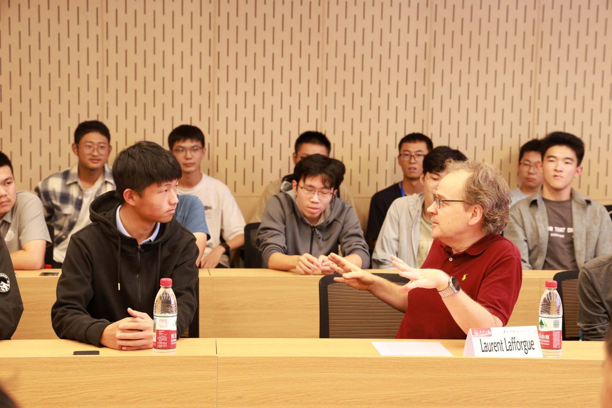 During the interactive session, students enthusiastically asked questions focusing on mathematics learning methods, cultivation of research interests, and expansion of disciplinary horizons. Professor Lafforgue, drawing from his own academic journey, patiently answered the questions, inspiring students to appreciate the beauty of mathematics. He also emphasized the significant value of multilingual learning in breaking through cognitive limitations and deepening cross-cultural understanding of mathematics. The atmosphere was lively, the exchange was in-depth, and the students were greatly inspired.