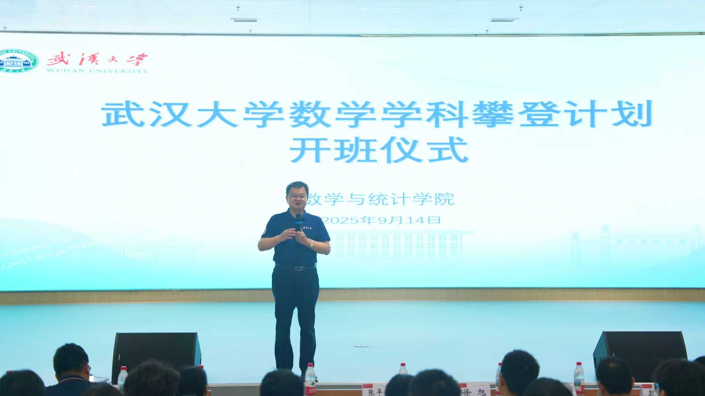 In order to further implement the national requirements for cultivating top-notch talents in fundamental disciplines and to nurture outstanding and innovative mathematical talents with cutting-edge research capabilities and global impact, Wuhan University held the opening ceremony of its Mathematics Discipline Climbing Program on September 14 in the Lei Jun Science and Technology Building. Academician Zhang Pingwen, President of Wuhan University, attended the ceremony, along with members of the Climbing Program Training Committee from the School of Mathematics and Statistics, selected undergraduate participants of the research-oriented recruitment track, and other interested students. The event was presided over by Professor Fan Huijun, Dean of the School of Mathematics and Statistics.